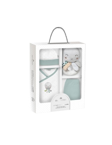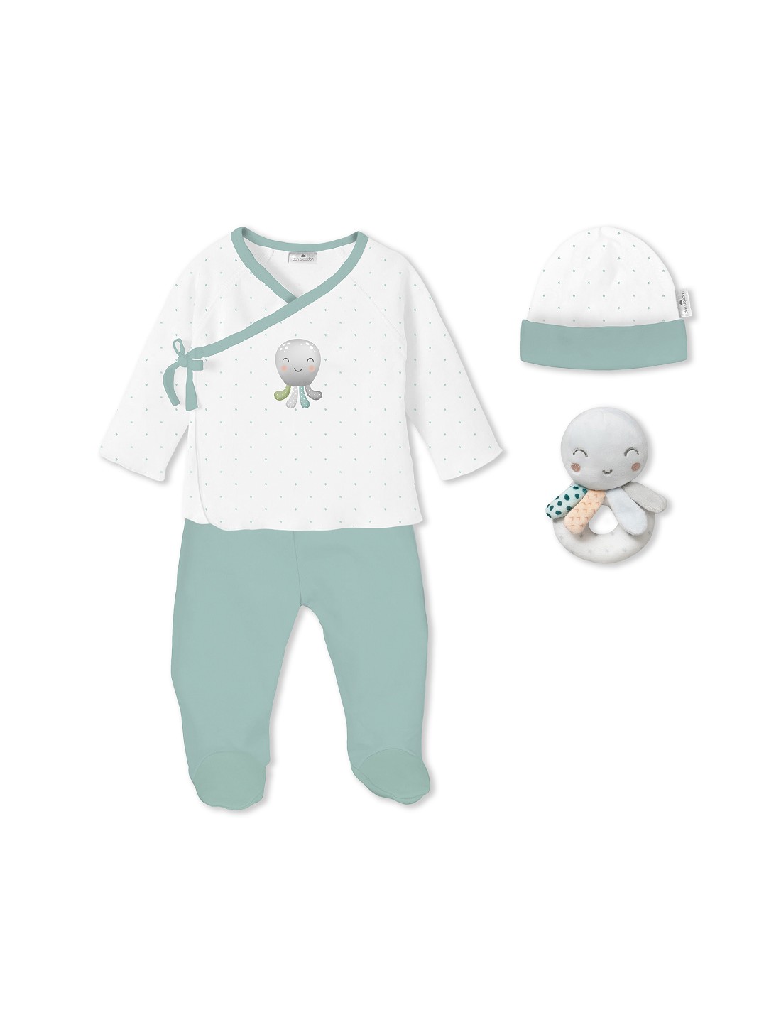 Set Regalo Sonajero 4 Pcs 100% Alg Talla 0-6 Mod Pulpo Verde