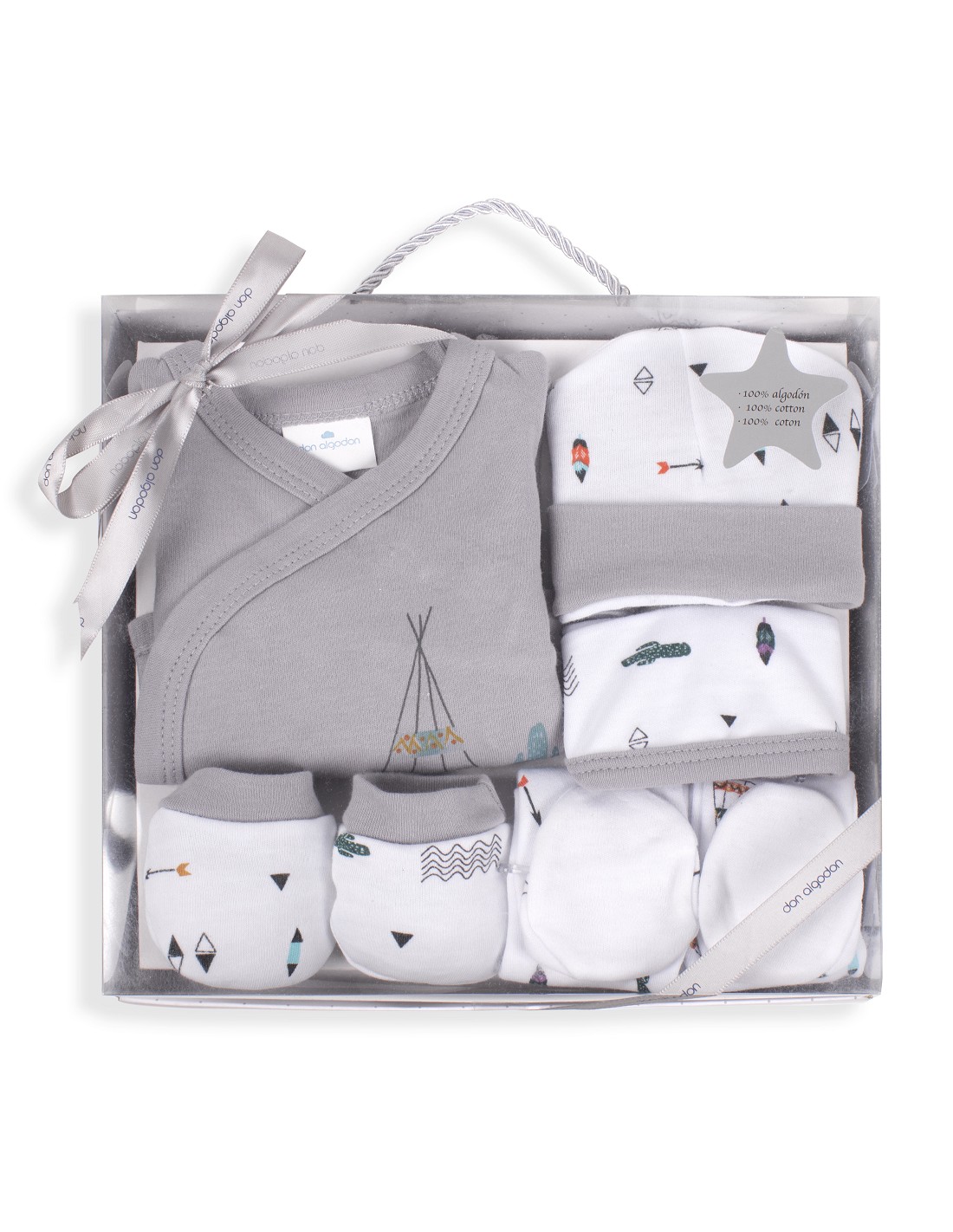 Set Regalo 5 Pcs 100% Alg T 0-6 m Mod. Dakota Gris