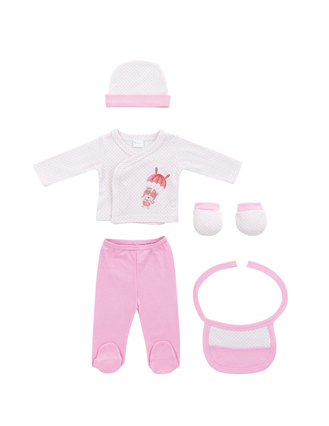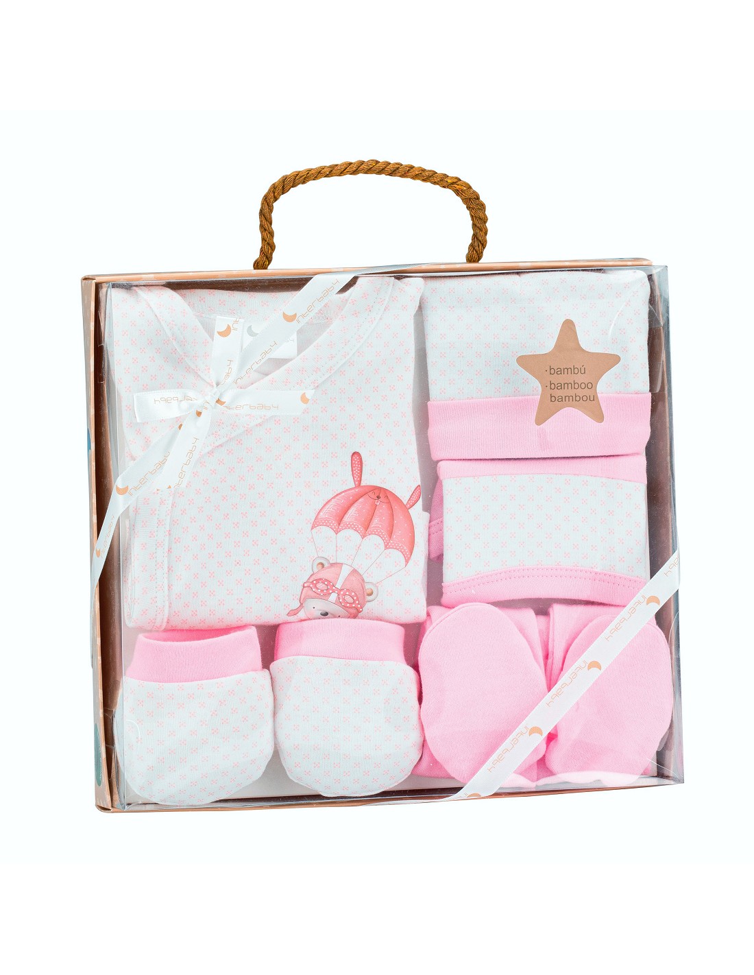 Set Regalo 5 Pcs 100% Alg T 0-6 m Mod Paracaidas Rosa