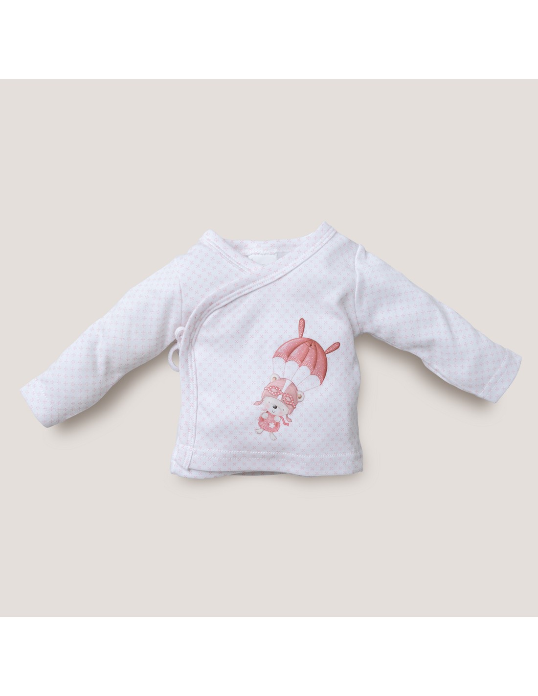 Compuesto por gorro, camisa, polaina, manopla y babero.Edad 0-6 meses.
