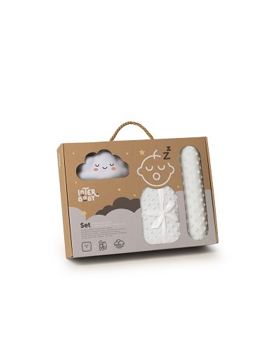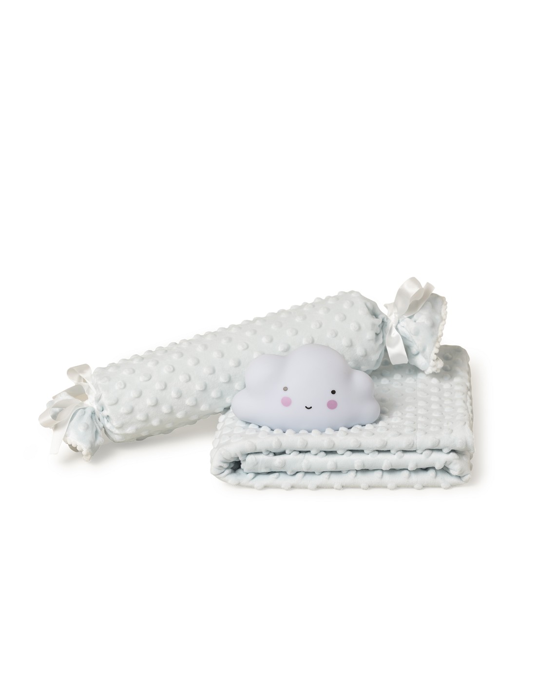 Set Manta de terciopelo para cuna acabado en burbuja y borreguillo. Fabricado en microfibra de alta calidad para dotar a tu bebé de una sensación térmica muy agradable. Cojín antivuelco y una lamparita quitamiedos con el que se sentirá seguro por las noches.