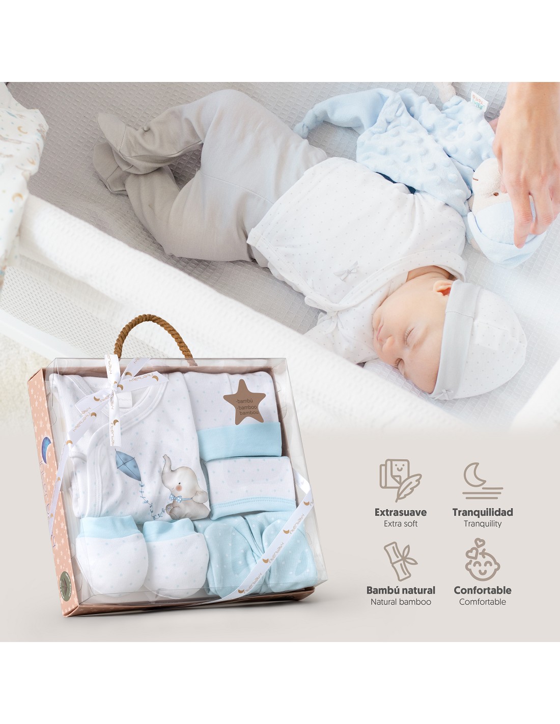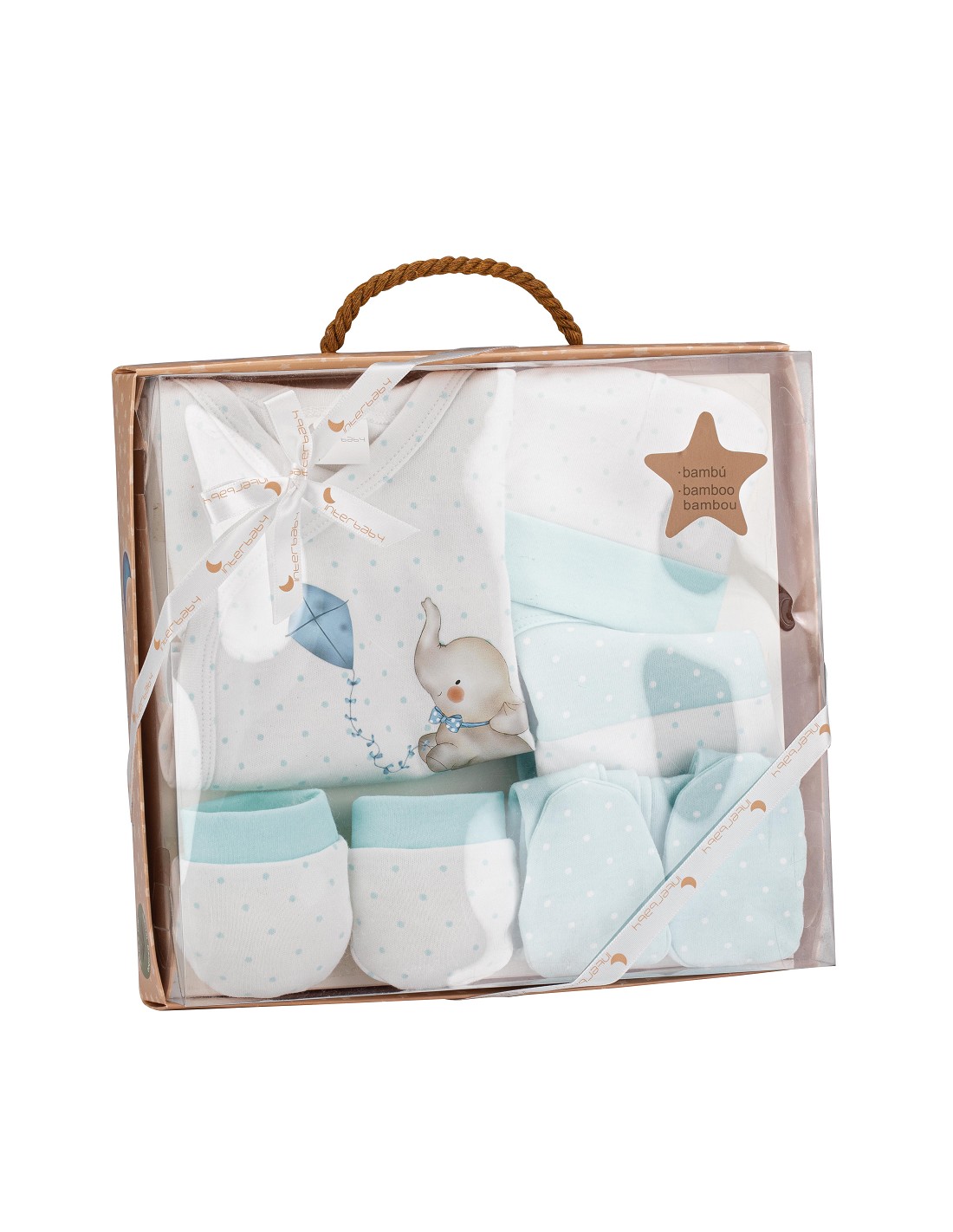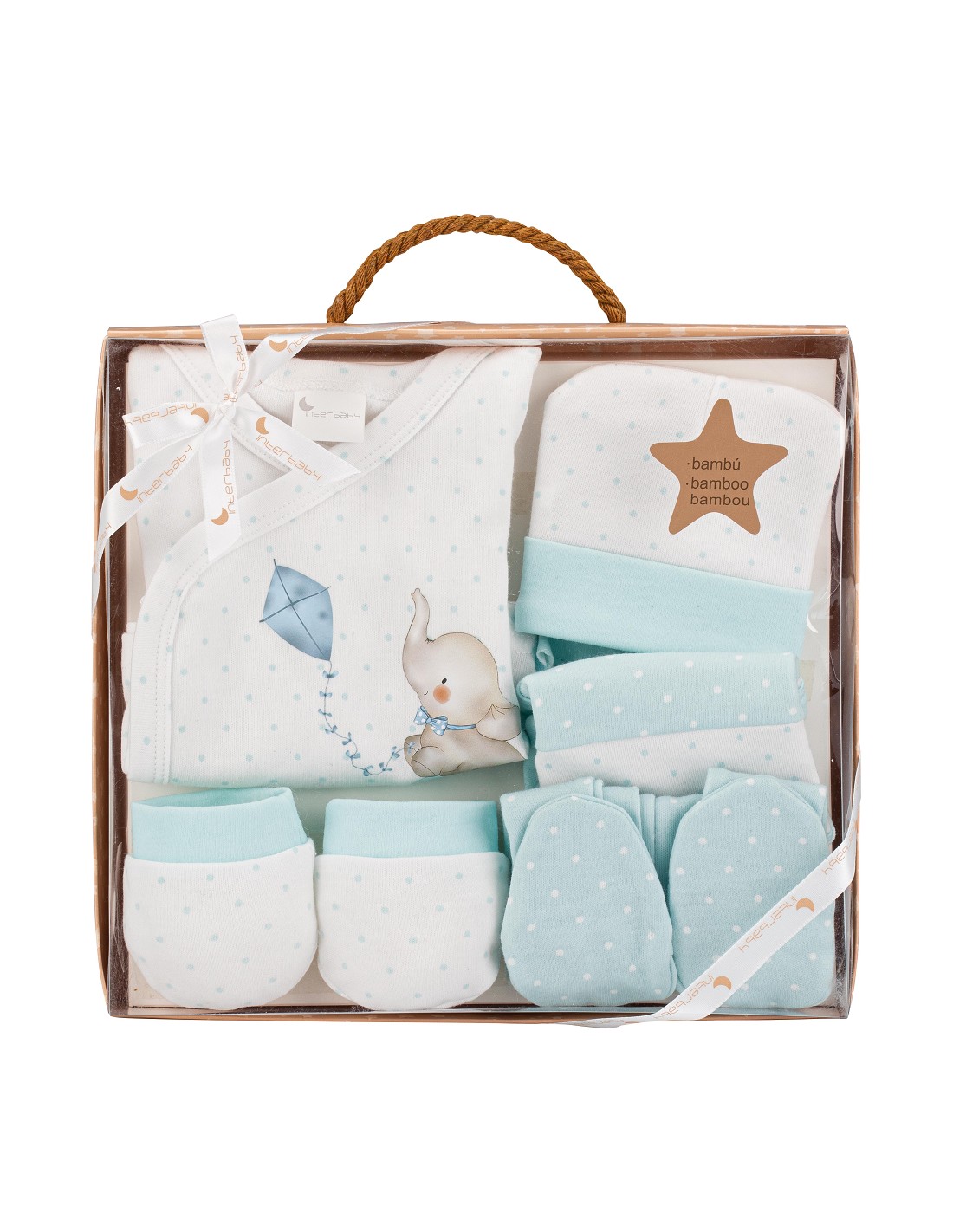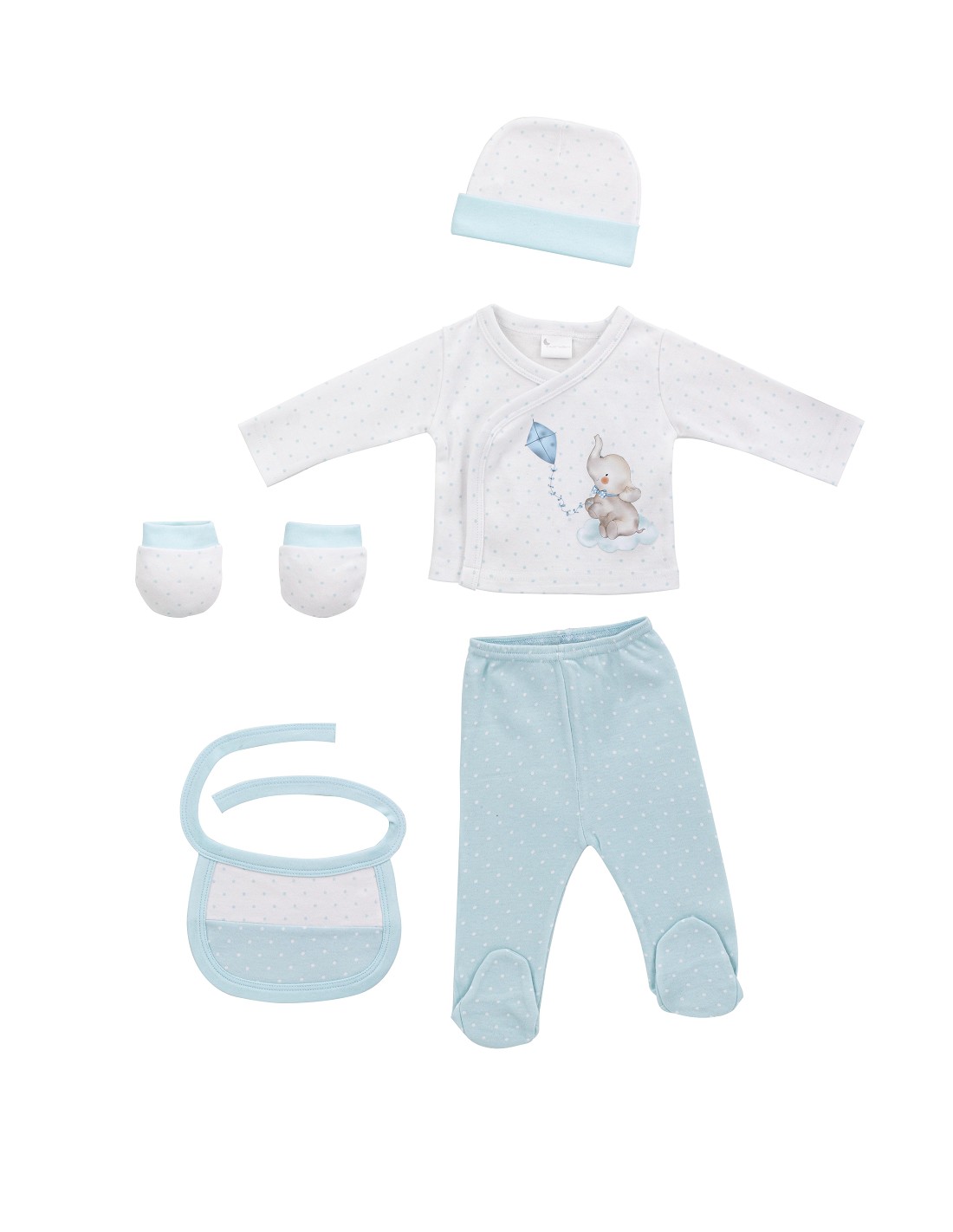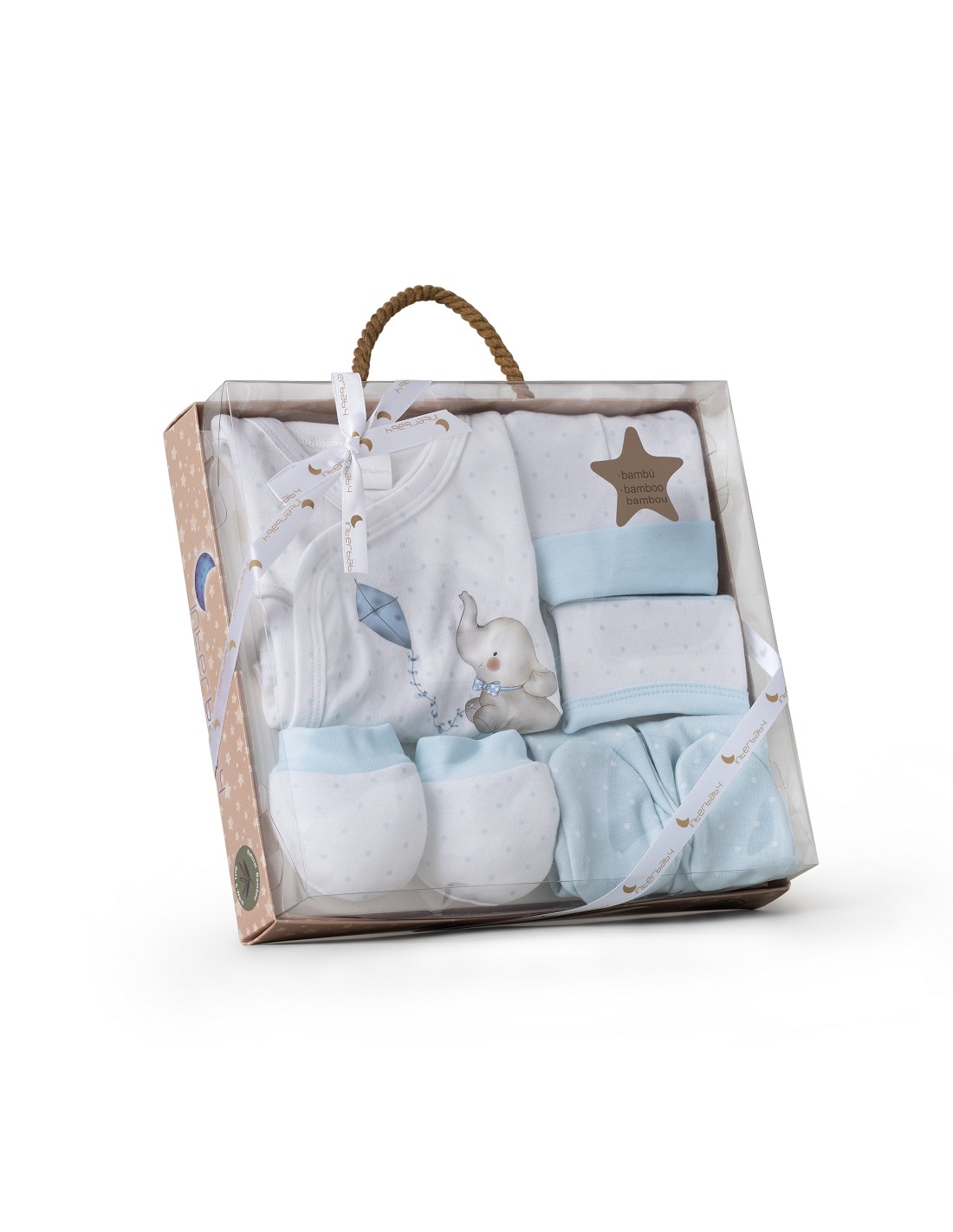 Set Regalo 5 Pcs 100% Alg T 0-6 m Mod Elefantito Azul
