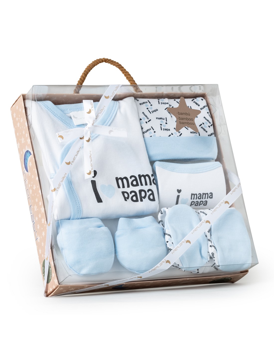Set Regalo 5 Pcs 100% Alg T 0-6 m Mod I Love Mama-Papa Azul