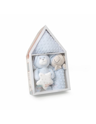 Set 3 Pcs Casita(Peluche+Manta+Dou Dou) Azul