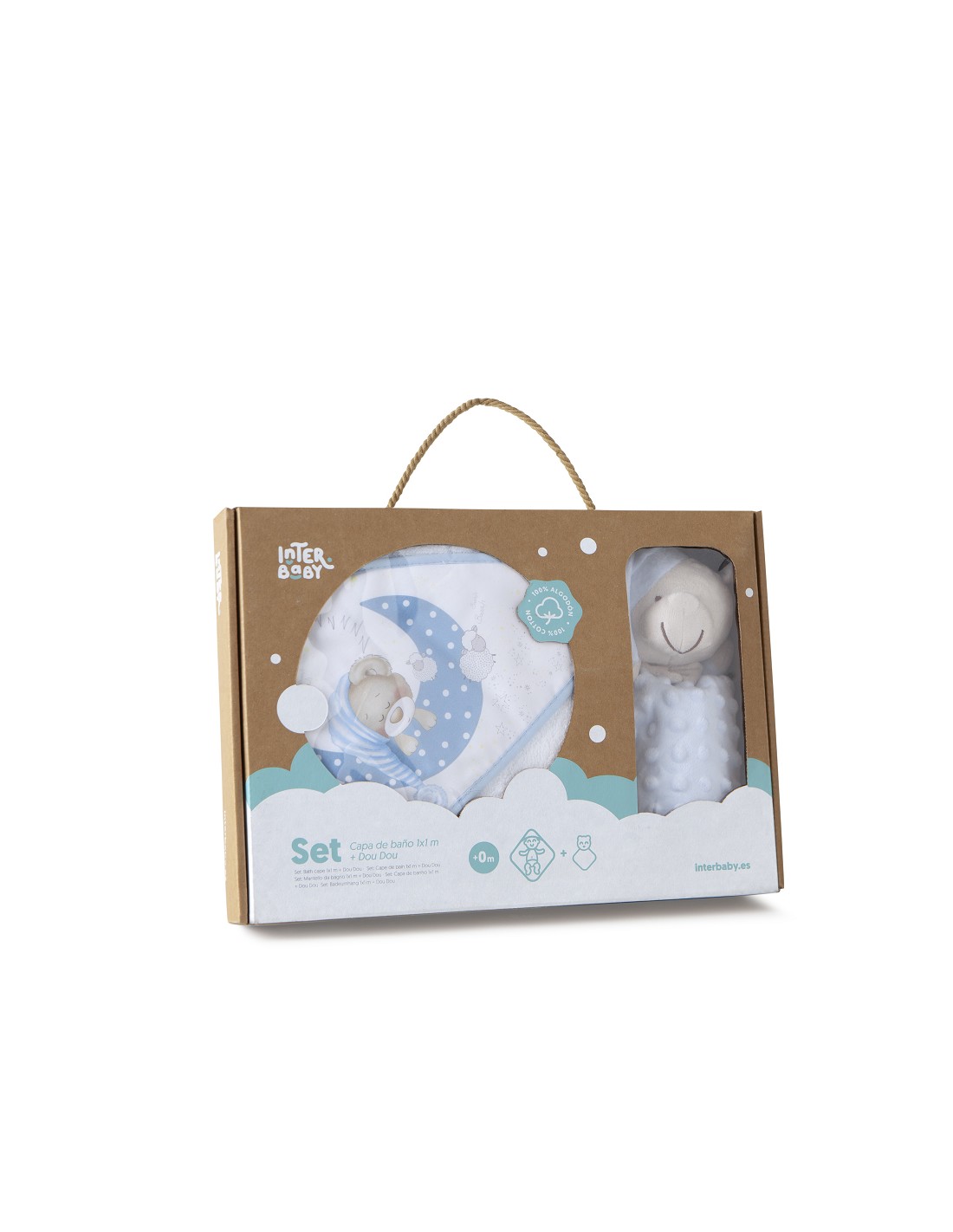 Capa de baño 100 % algodón. Idela para secar a tu bebé despues de su baño. Secado rápido y confortable. Incluye bonito dou dou de regalo para que tu bebe se entretenga con su juguete preferido mientras le secas.