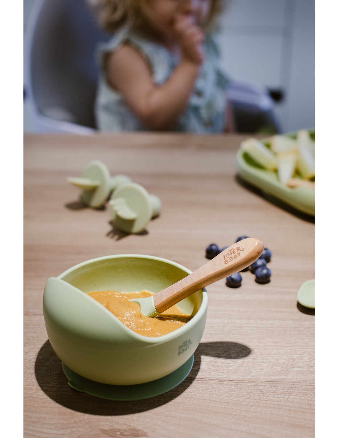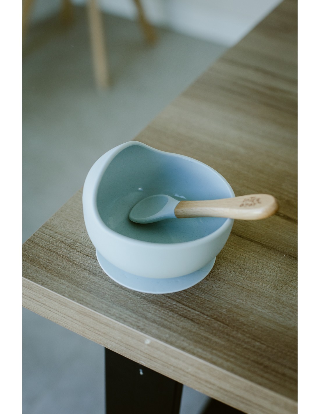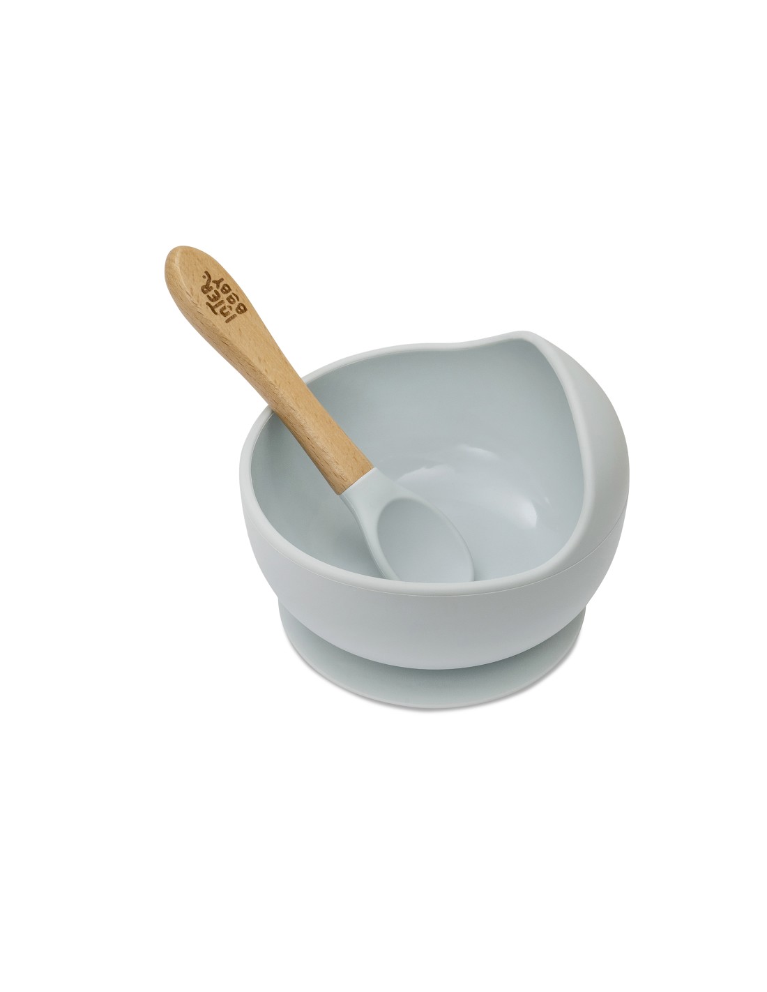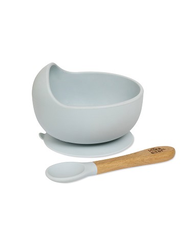 Cuenco con ventosa + cuchara de silicona. Diseño muy práctico y original para el aprendizaje a comer gracias a su pared en forma de ola. Empujar la comida y llenar cada cucharada será mas sencillo para tu bebé. Apto para lavavajillas. Libre de BPA, PVC y ftalatos.