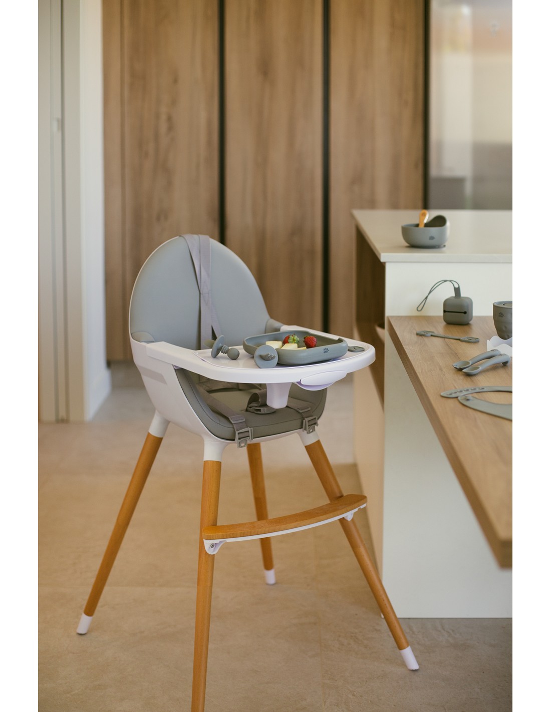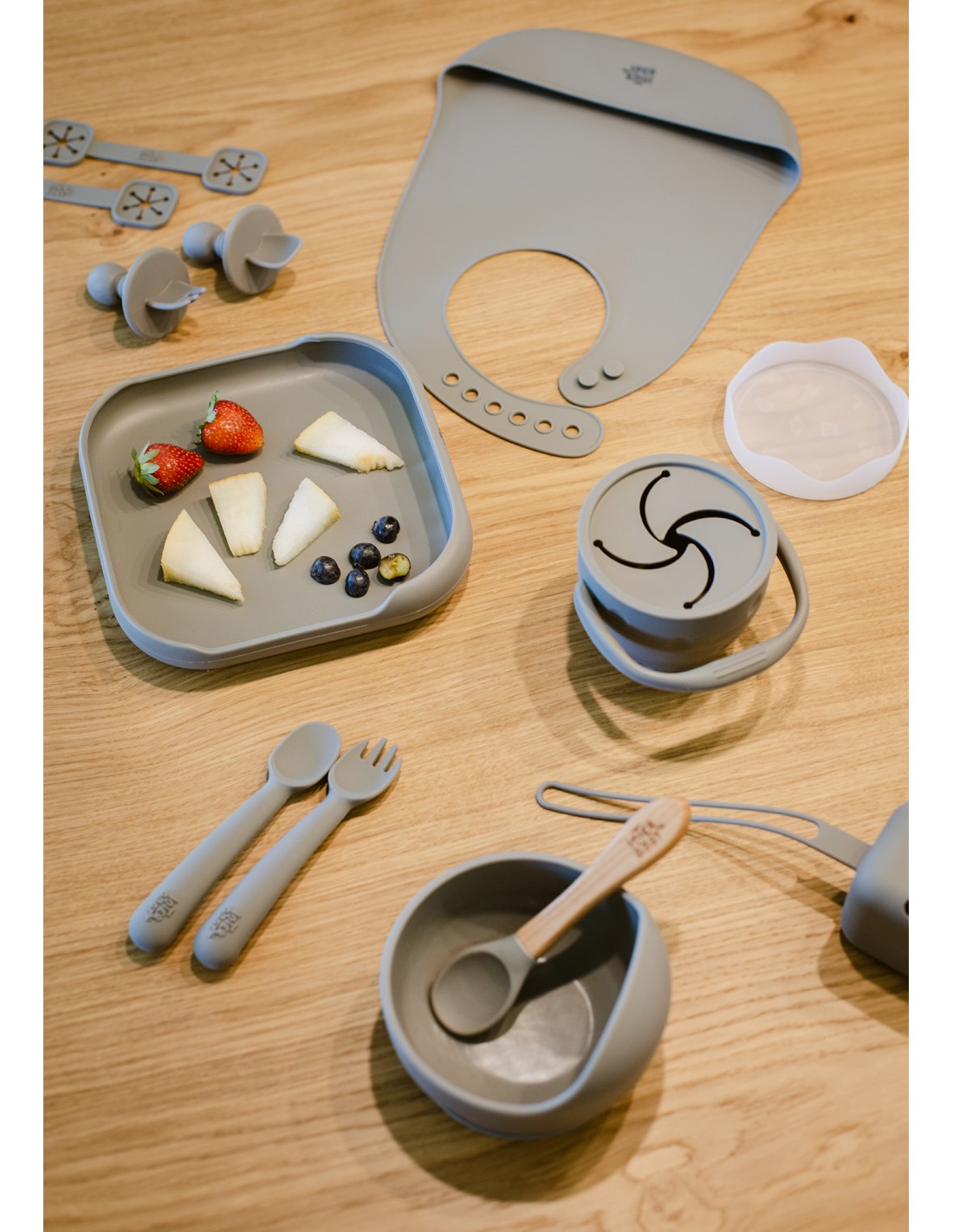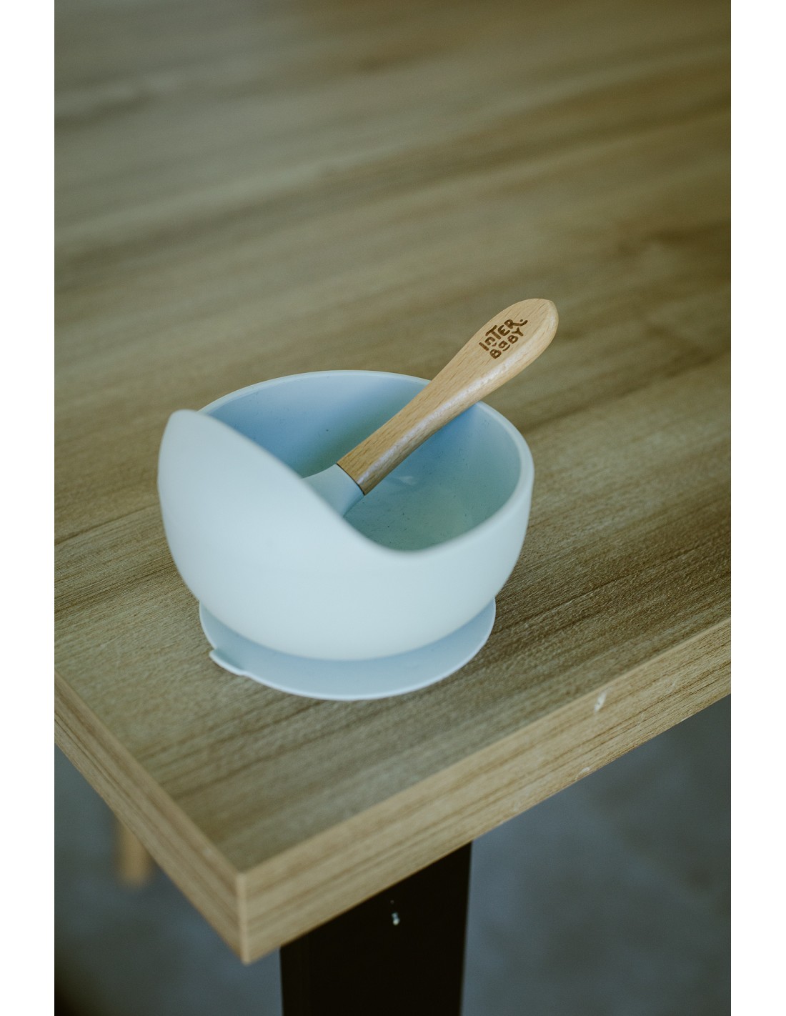 Cuenco con ventosa + cuchara de silicona. Diseño muy práctico y original para el aprendizaje a comer gracias a su pared en forma de ola. Empujar la comida y llenar cada cucharada será mas sencillo para tu bebé. Apto para lavavajillas. Libre de BPA, PVC y ftalatos.