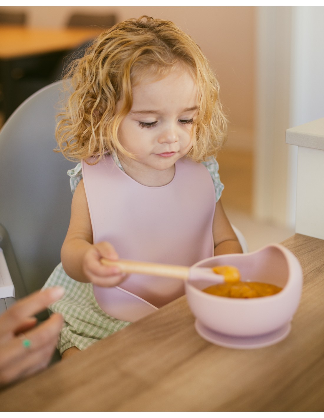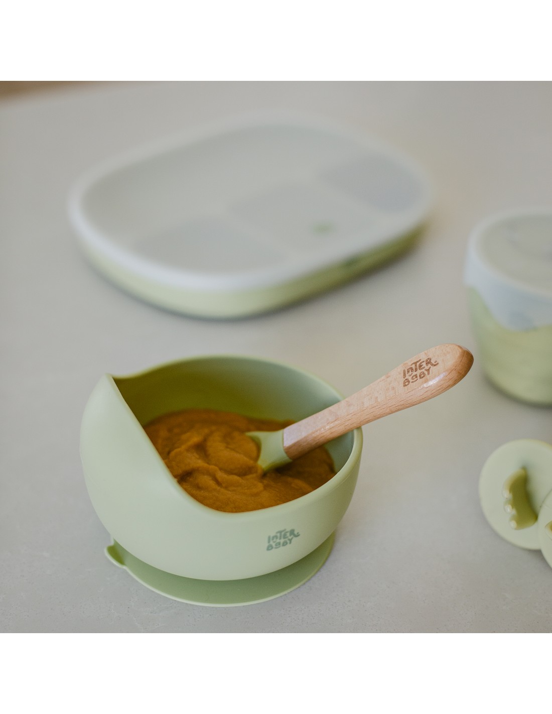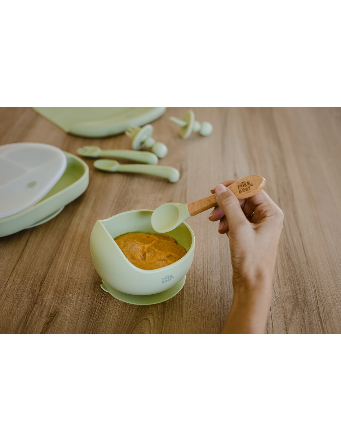Cuenco con ventosa + cuchara de silicona. Diseño muy práctico y original para el aprendizaje a comer gracias a su pared en forma de ola. Empujar la comida y llenar cada cucharada será mas sencillo para tu bebé. Apto para lavavajillas. Libre de BPA, PVC y ftalatos.