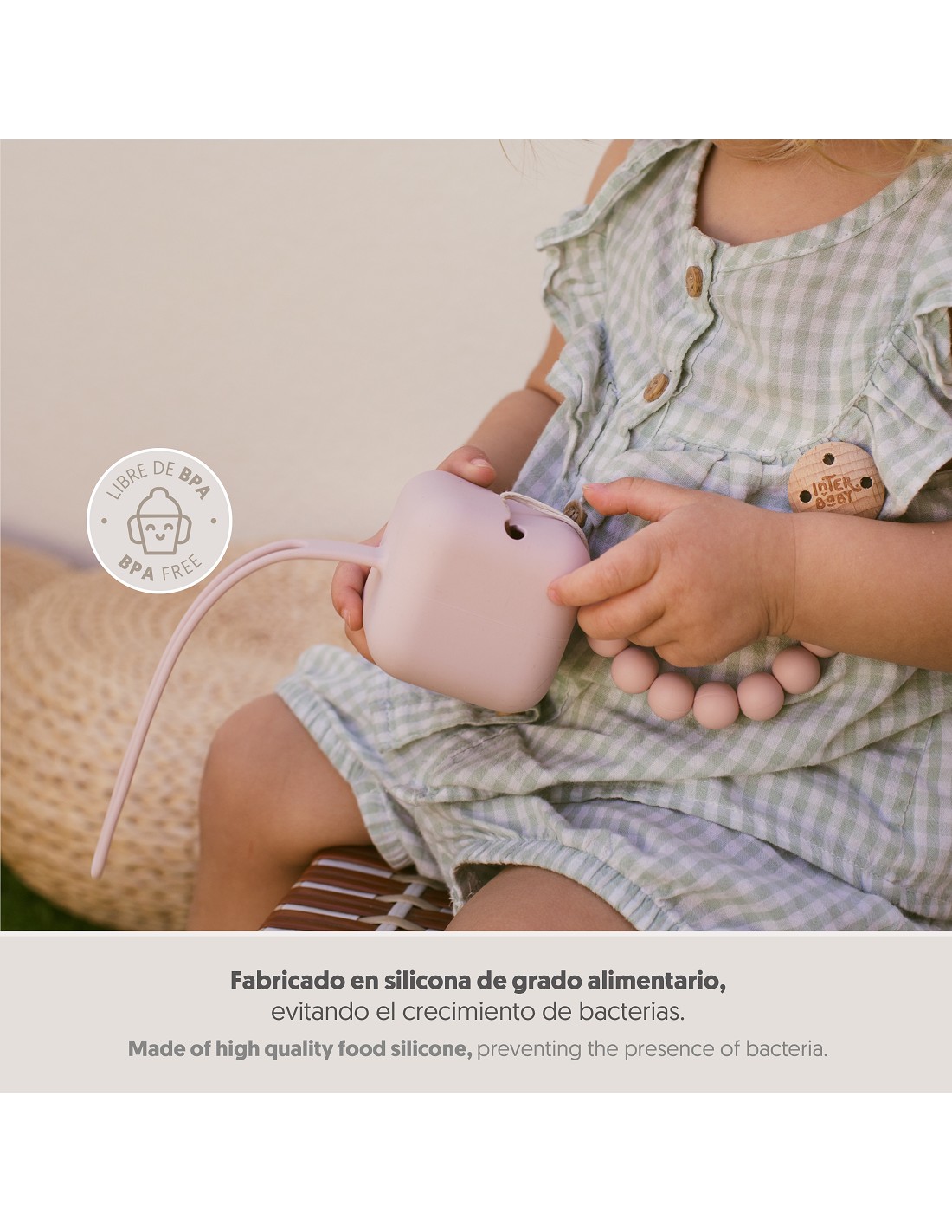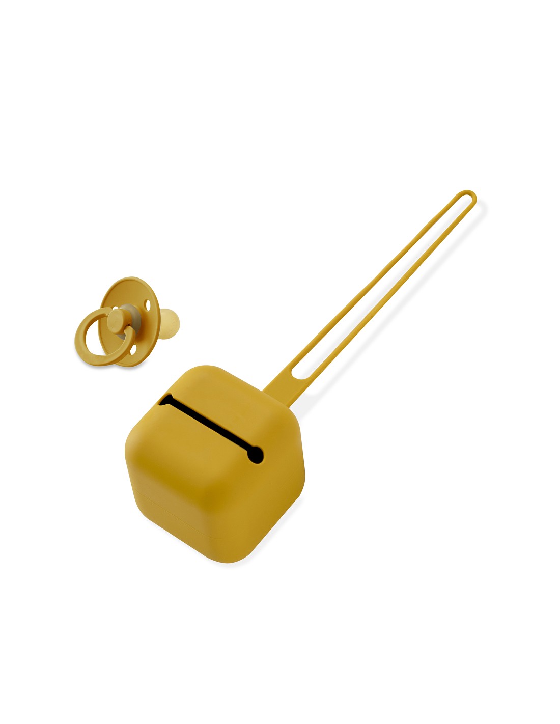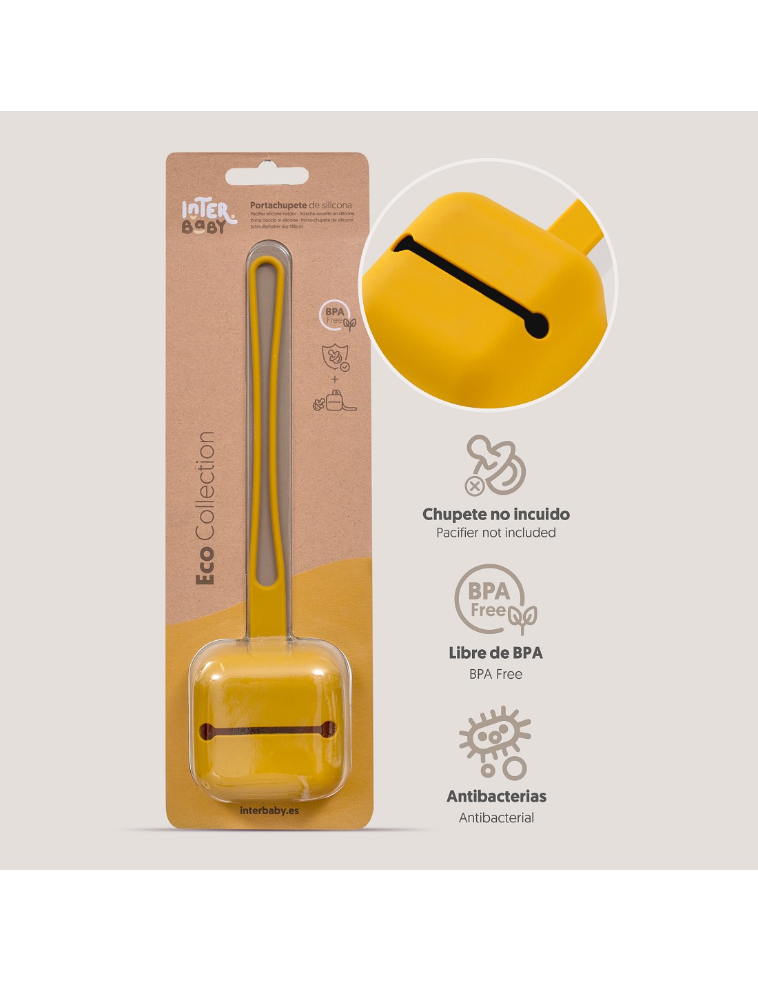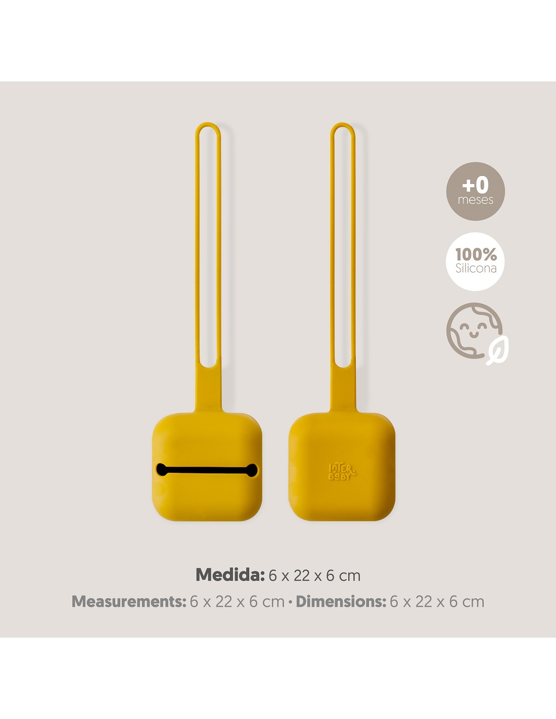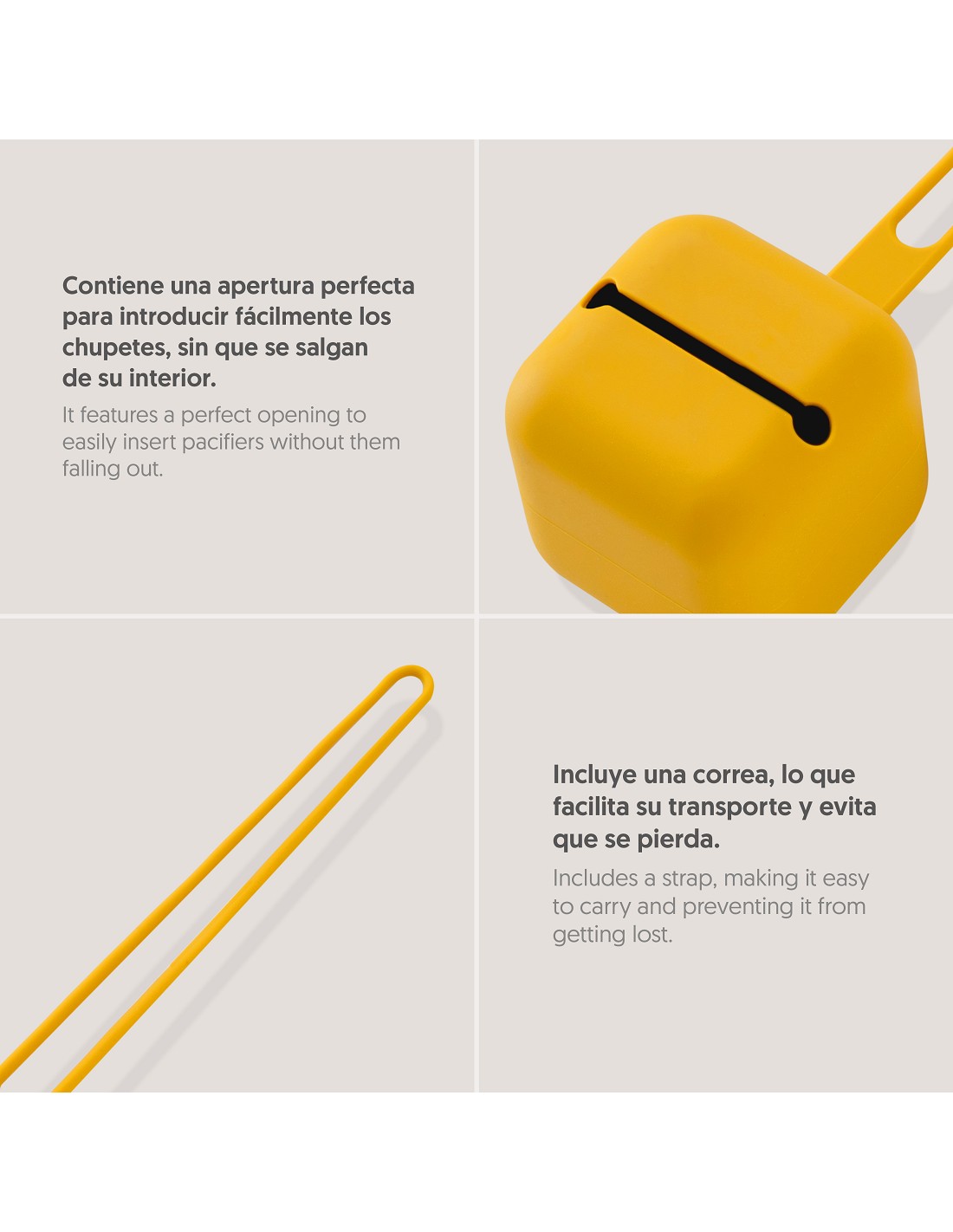 Portachupetes de silicona diseñado para llevarlo colgado en el carrito y tenerlo siempre a mano. No incluye el chupete. Apto para lavavajillas. Libre de BPA, PVC y ftalatos.