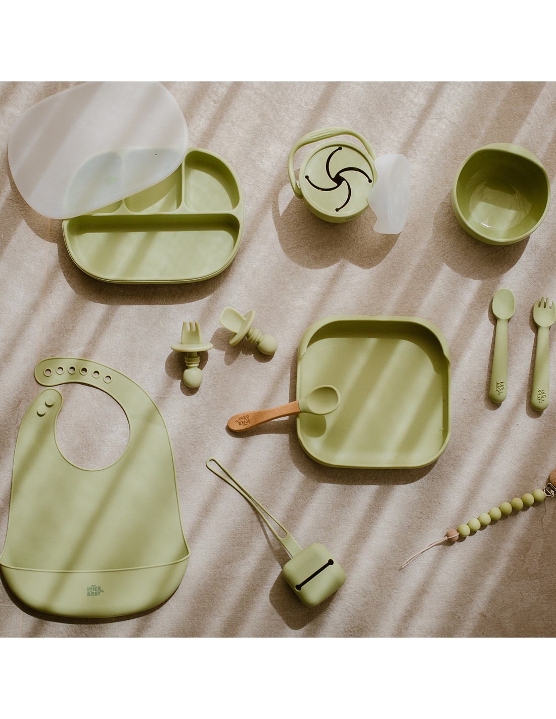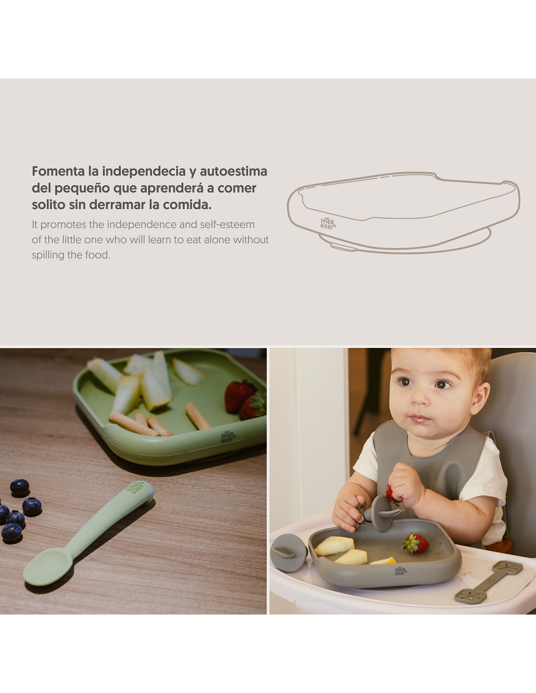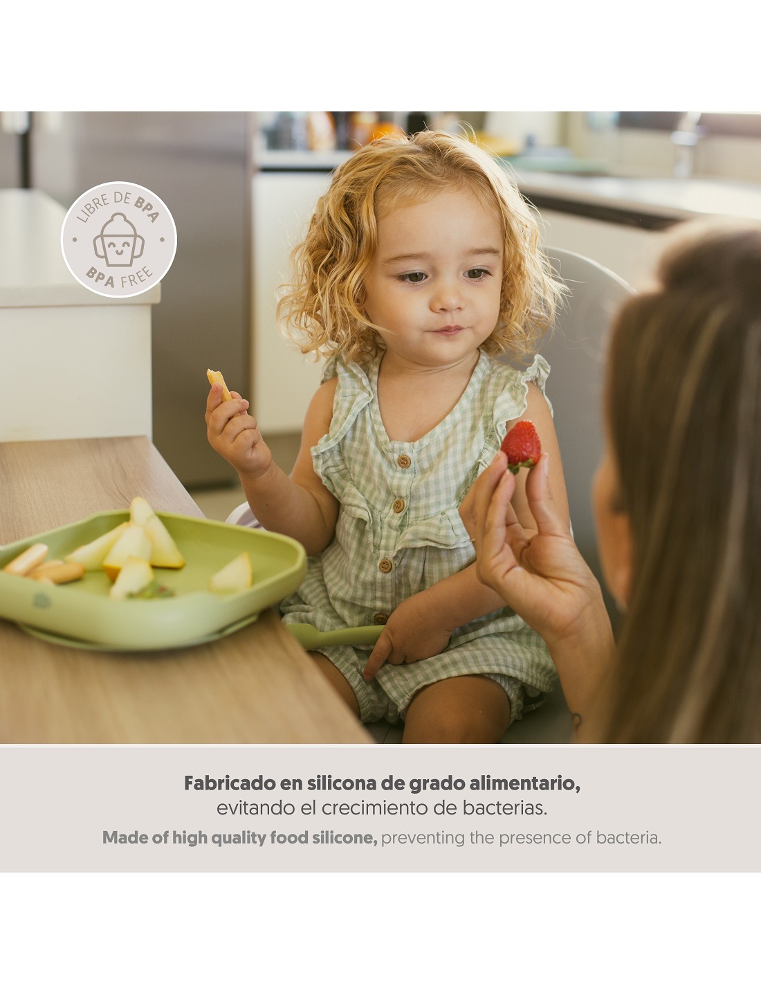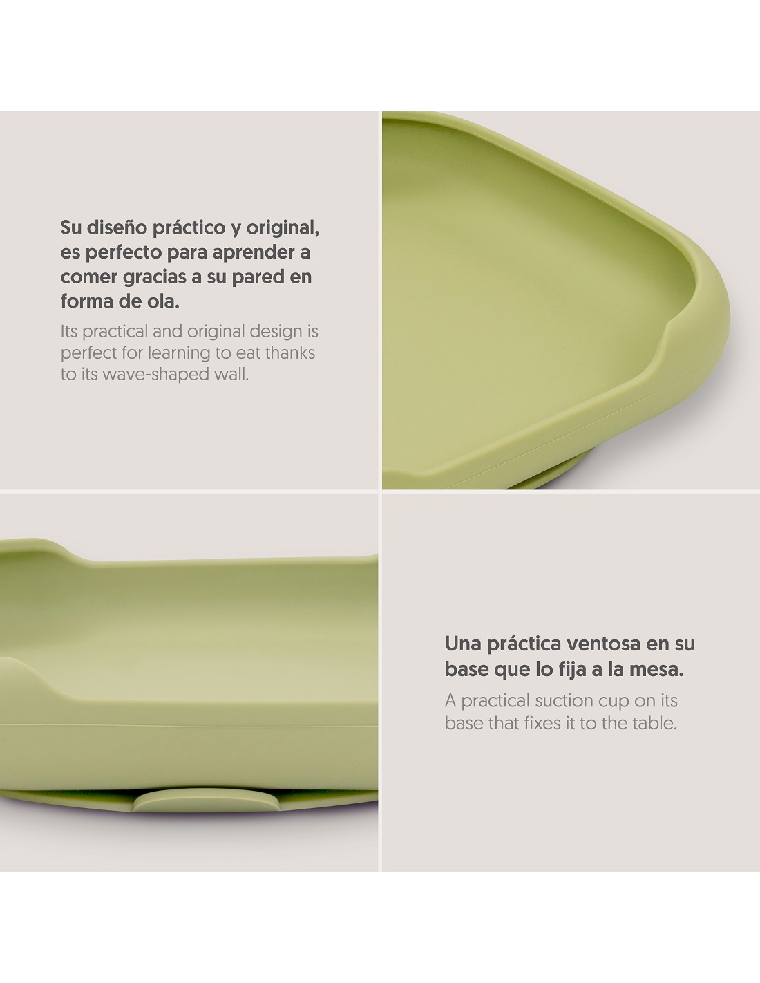 Práctico plato de silicona que incorpora ventosas para una perfecta fijación a la superficie evitando accidentes. Su diseño ayuda a tu bebé en la iniciación en tomar los alimentos por sí mismos. Fácil limpieza y muy resistente. Libre de posibles infecciones al estar fabricado en silicona libre de BPA, PVC, Vinilo, Plomo y ftalatos. Apto para lavavajillas.