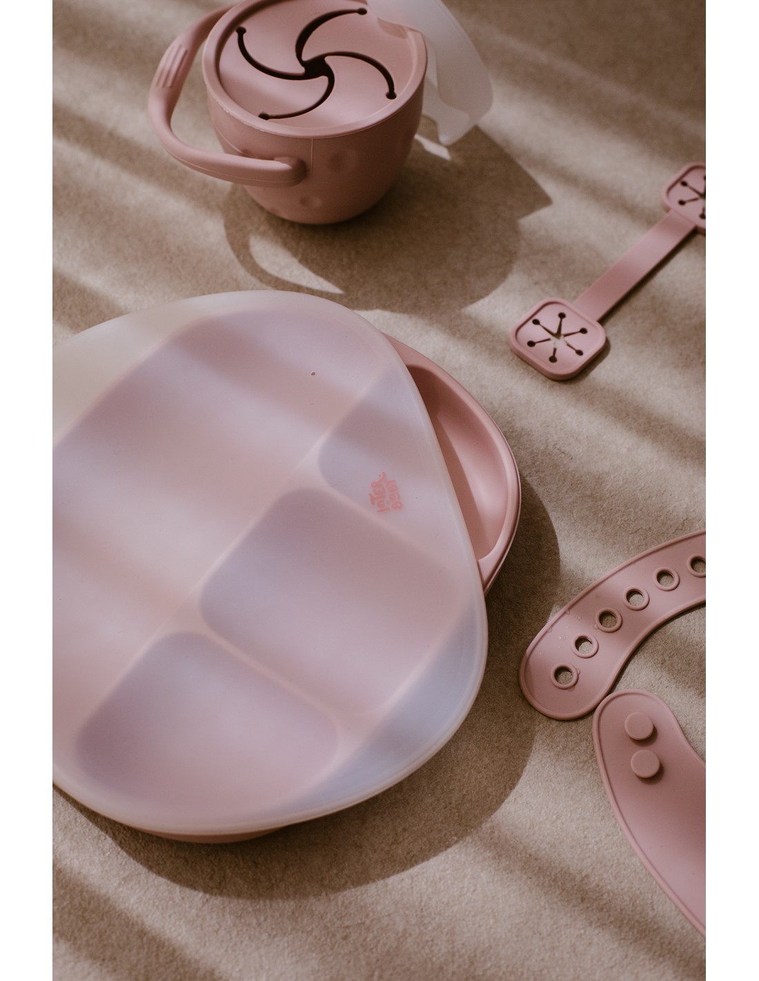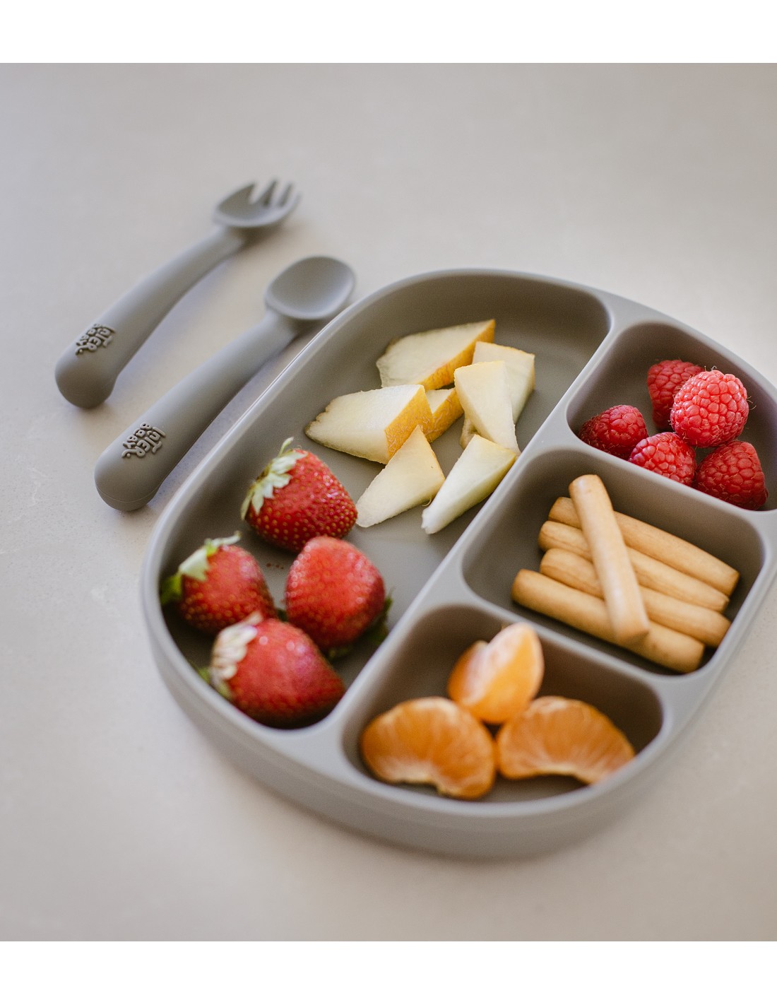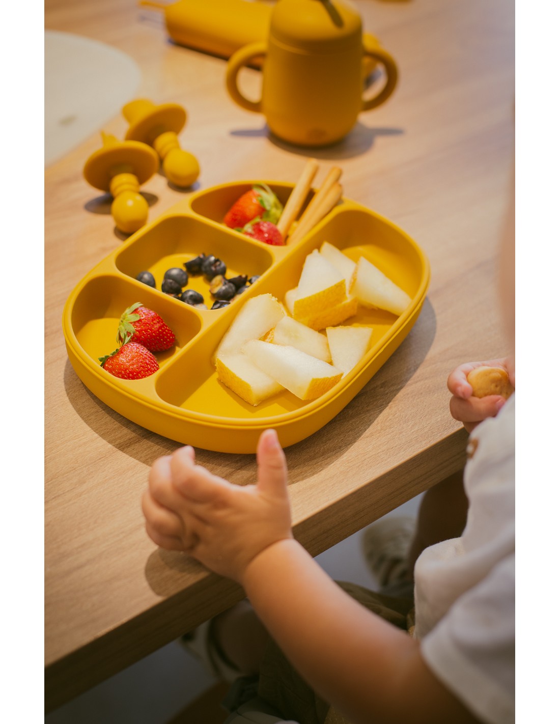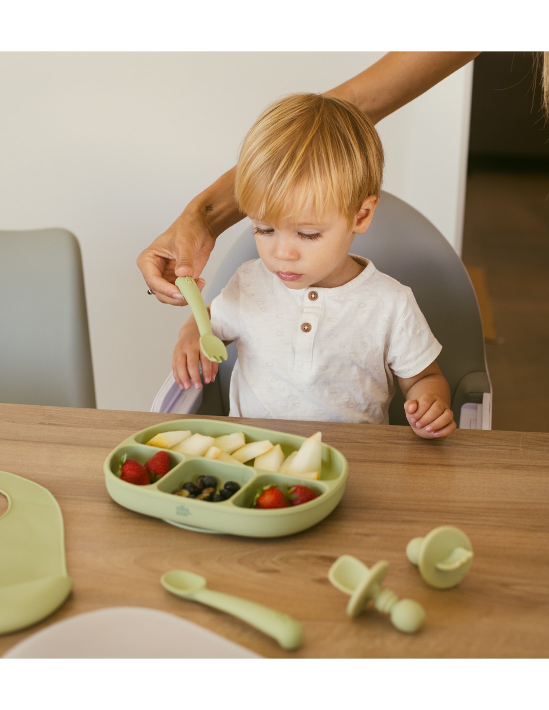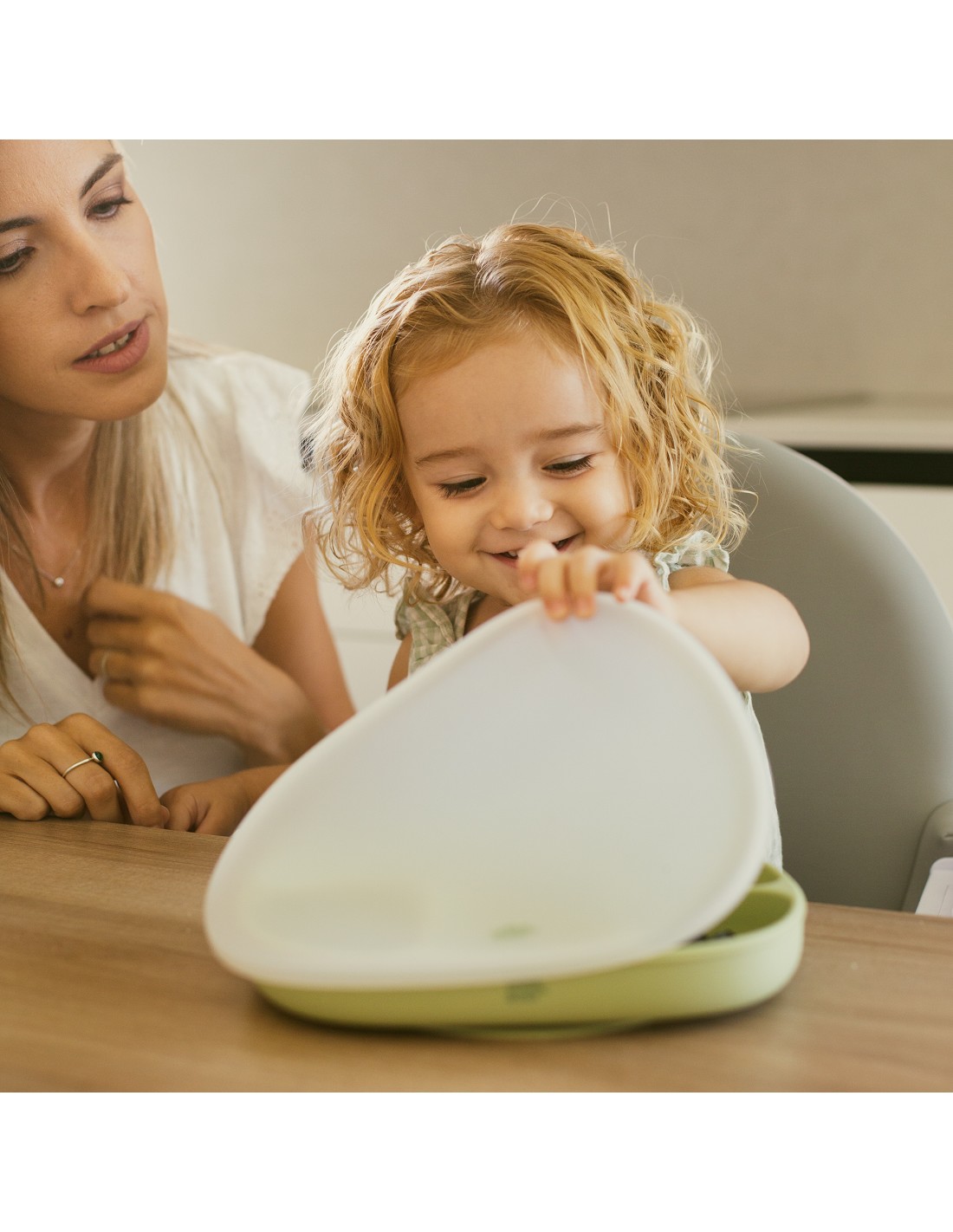 Plato de silicona que incorpora ventosas para eviatr accidentes. Dispone de 4 divisores para separar los distintos tipos de comida y que tu bebé experimente de manera individual el sabor y la textura de cada uno de ellos. Incluye tapadera para mejor conservación de la comida. Fácil limpieza y muy resistente. Libre de posibles infecciones al estar fabricado en silicona libre de BPA, PVC, Vinilo, Plomo y ftalatos. Apto para lavavajillas.