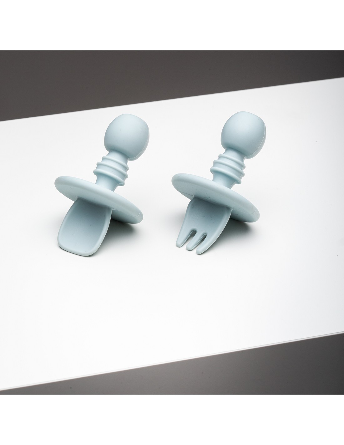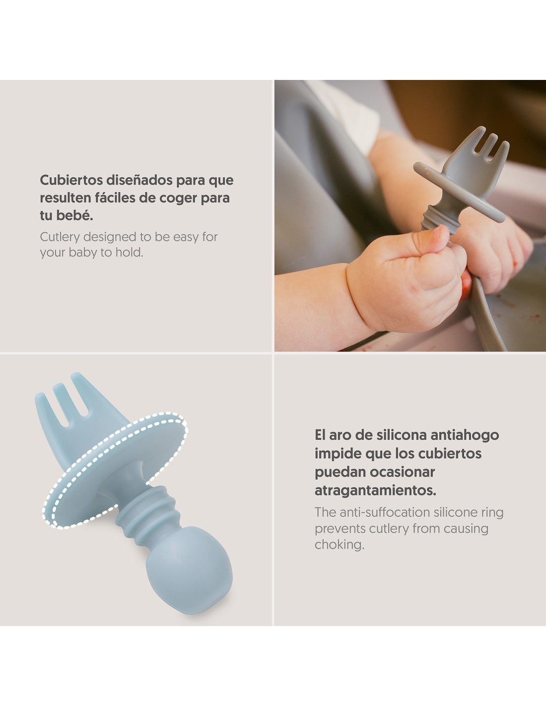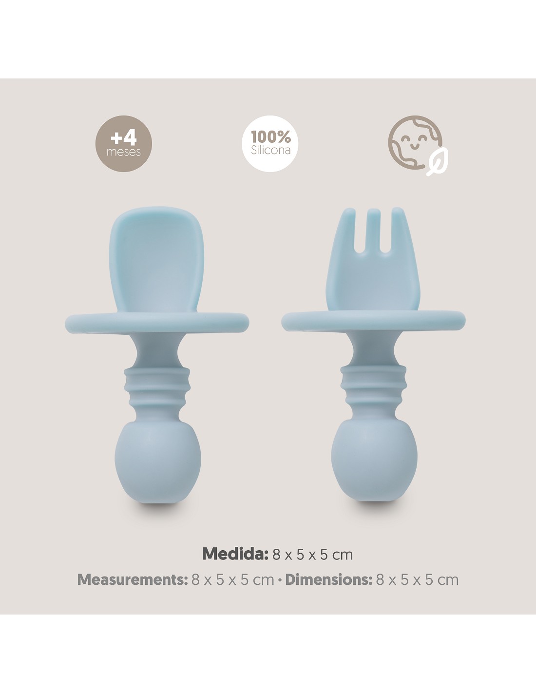 Set Cubiertos Aprendizaje de Silicona Azul Grisaceo