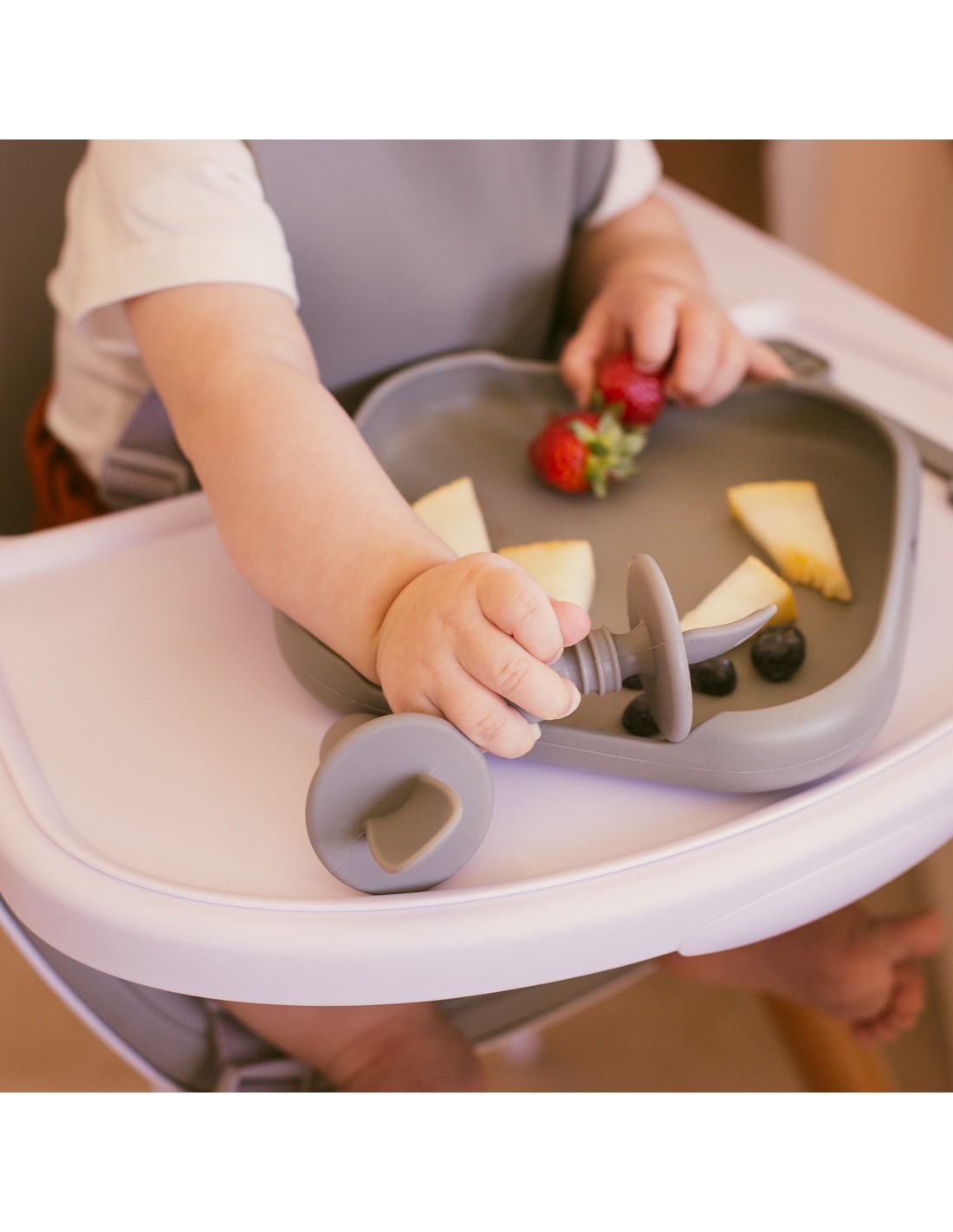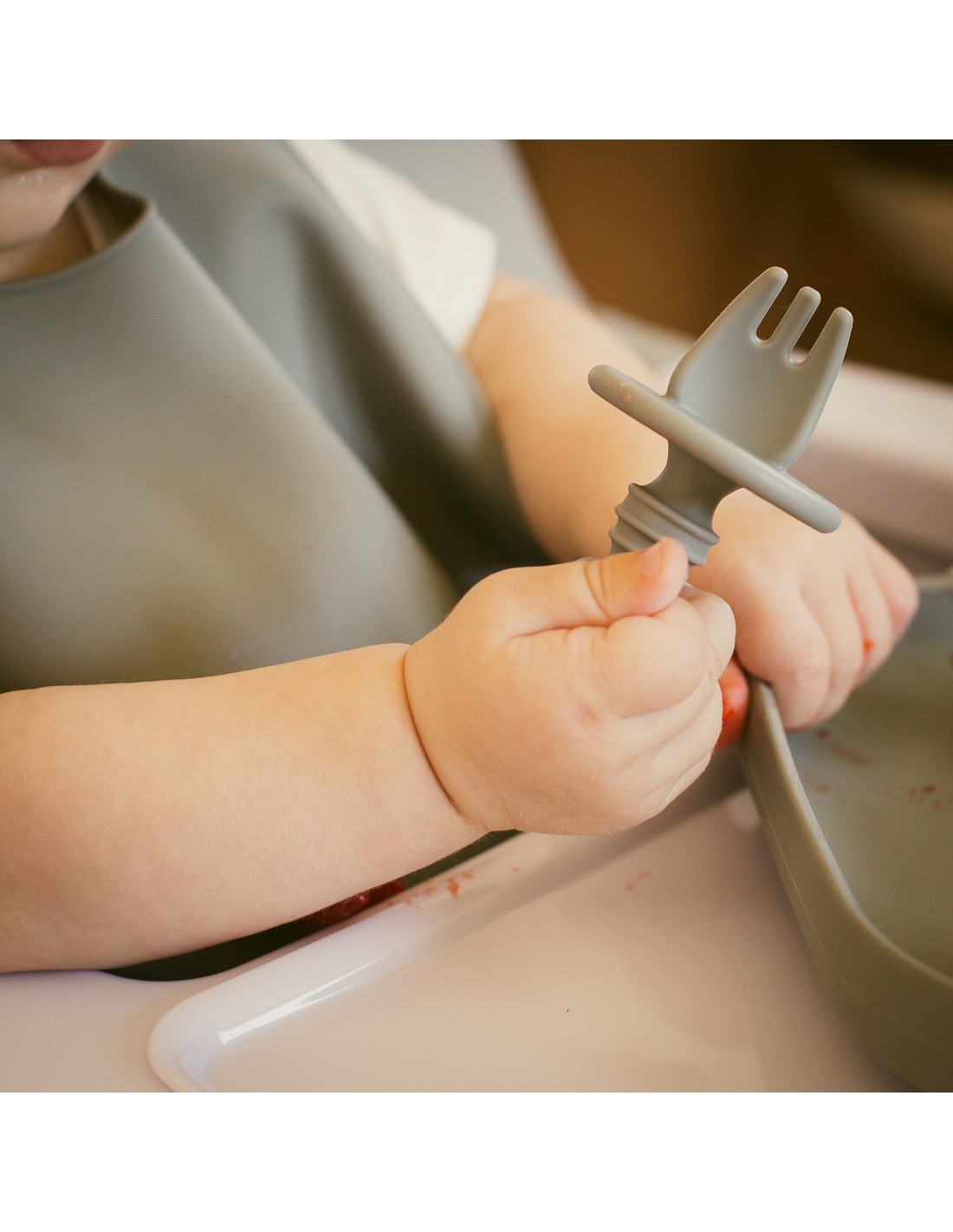 Set Cubiertos Aprendizaje de Silicona Gris Petroleo