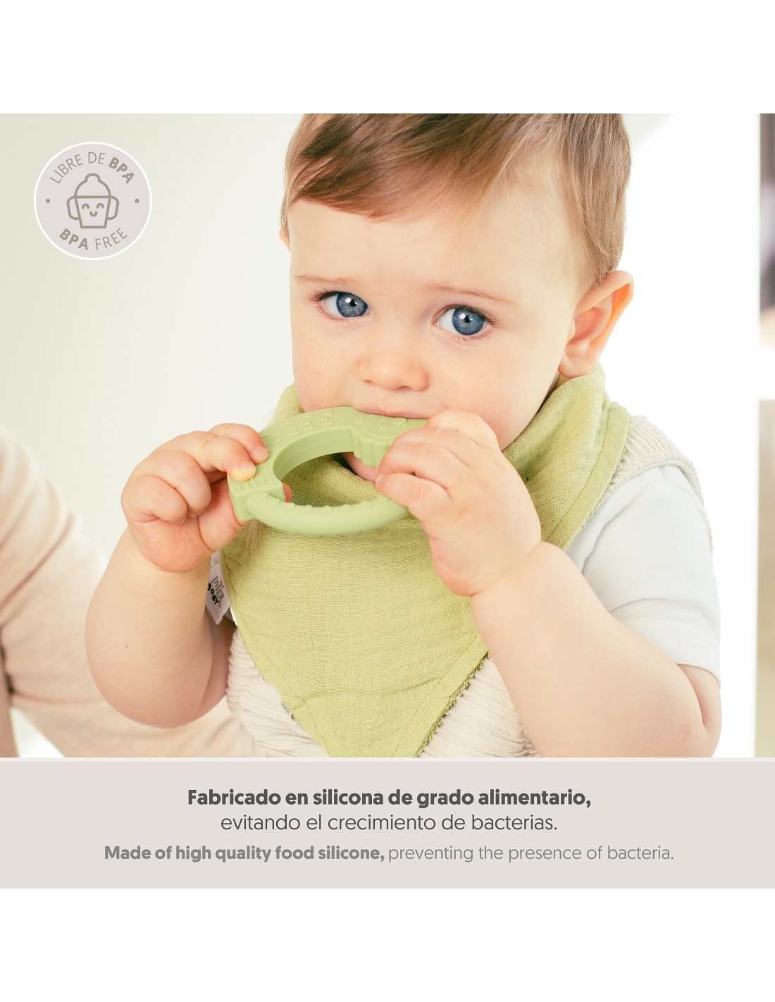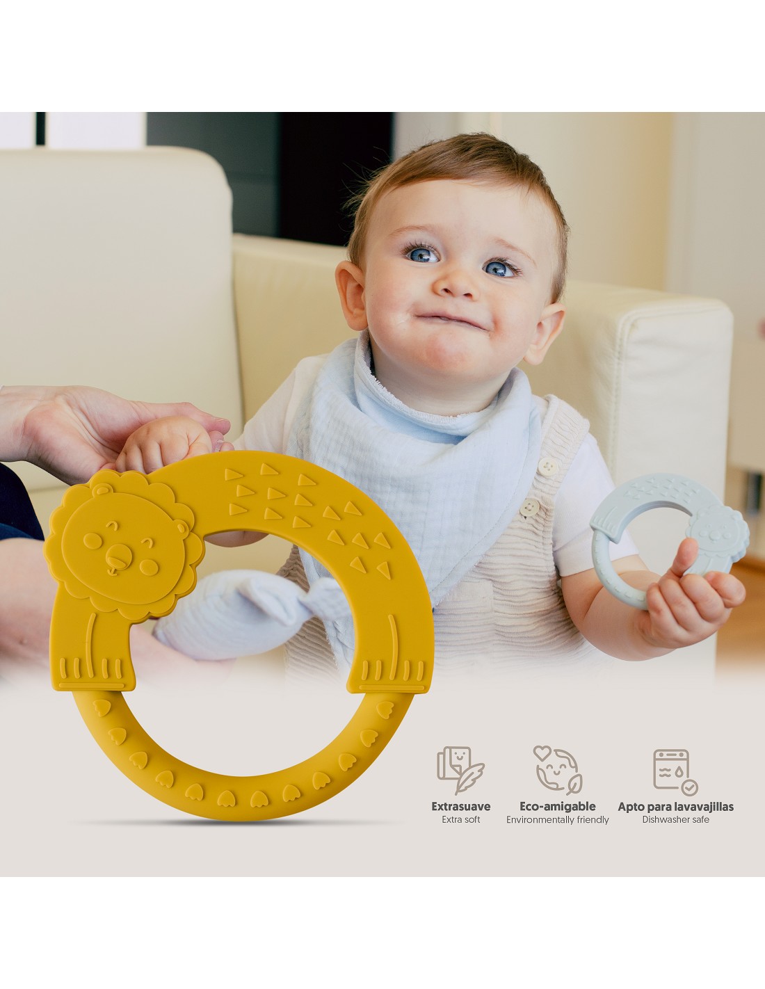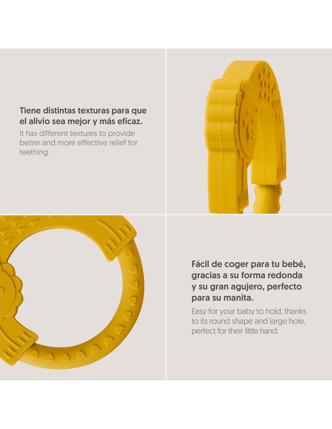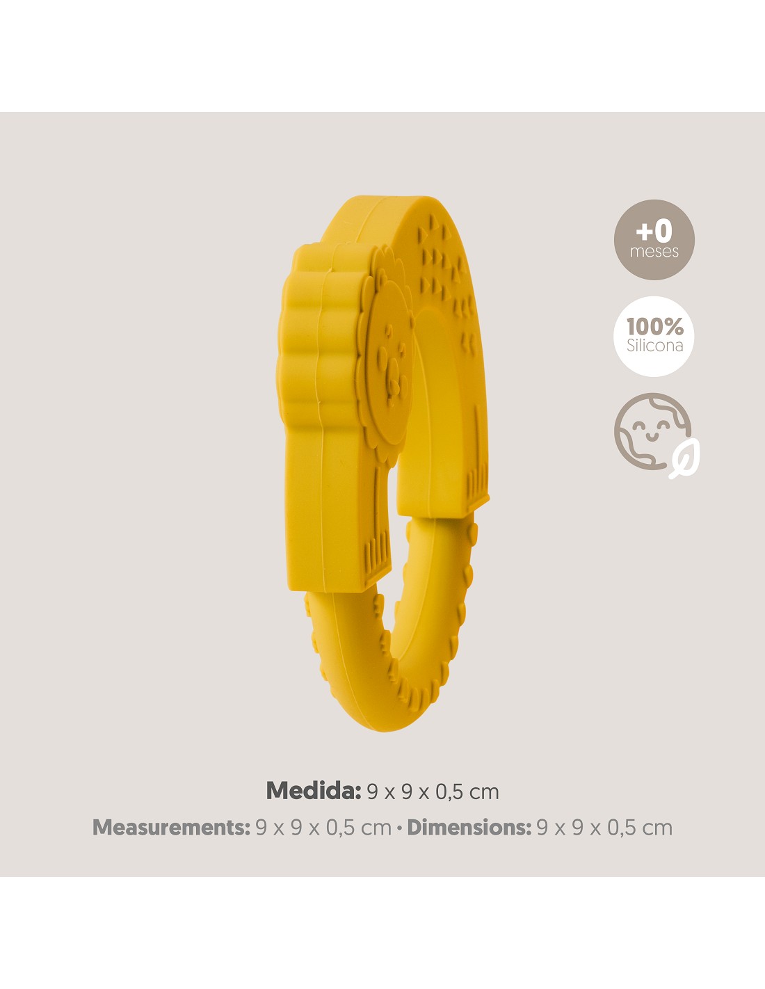 Mordedor de silicona con forma de león, fabrizado en silicona alimentaria. Ideal en su período de dentición. Apto para lavavajillas. Libre de BPA, PVC y ftalatos.