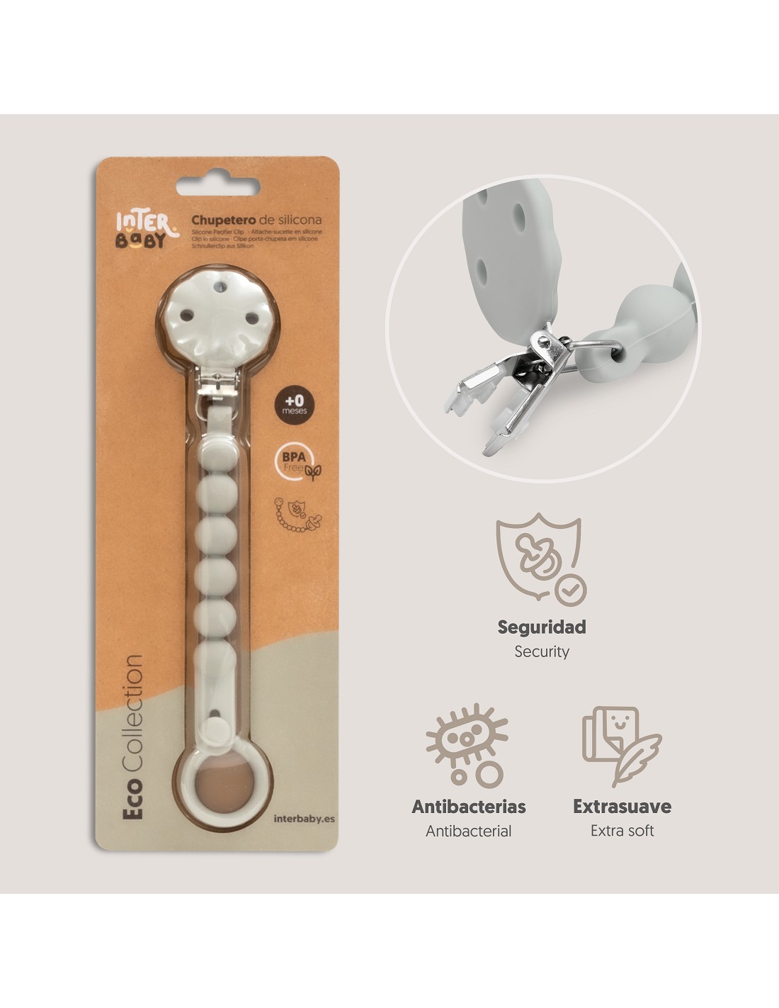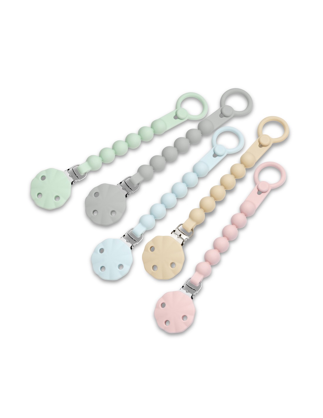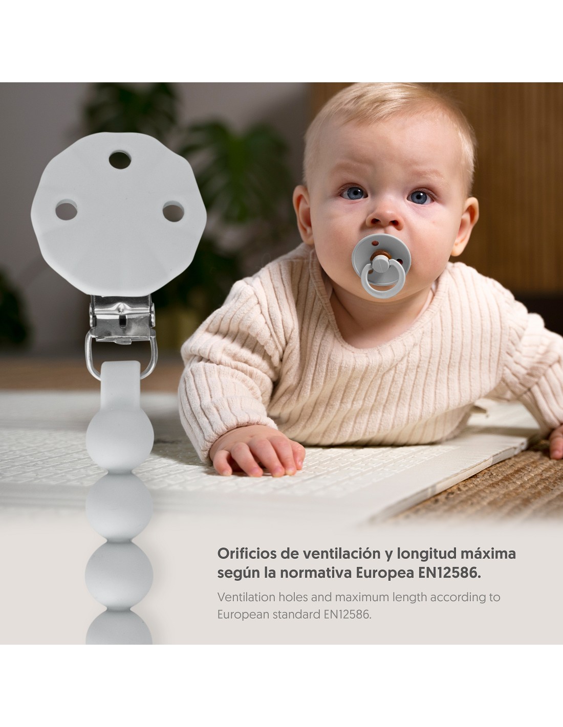 Chupetero tipo cadena fabricado en silicona alimentaria 100 % segura, ideal para el cuidado de tu bebe. No incluye el chupete. Apto para lavavajillas. Libre de BPA, PVC y ftalatos.