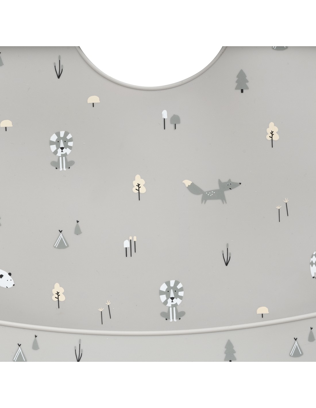 Babero Silicona Estampaddo Modelo Forest Gris Petroleo