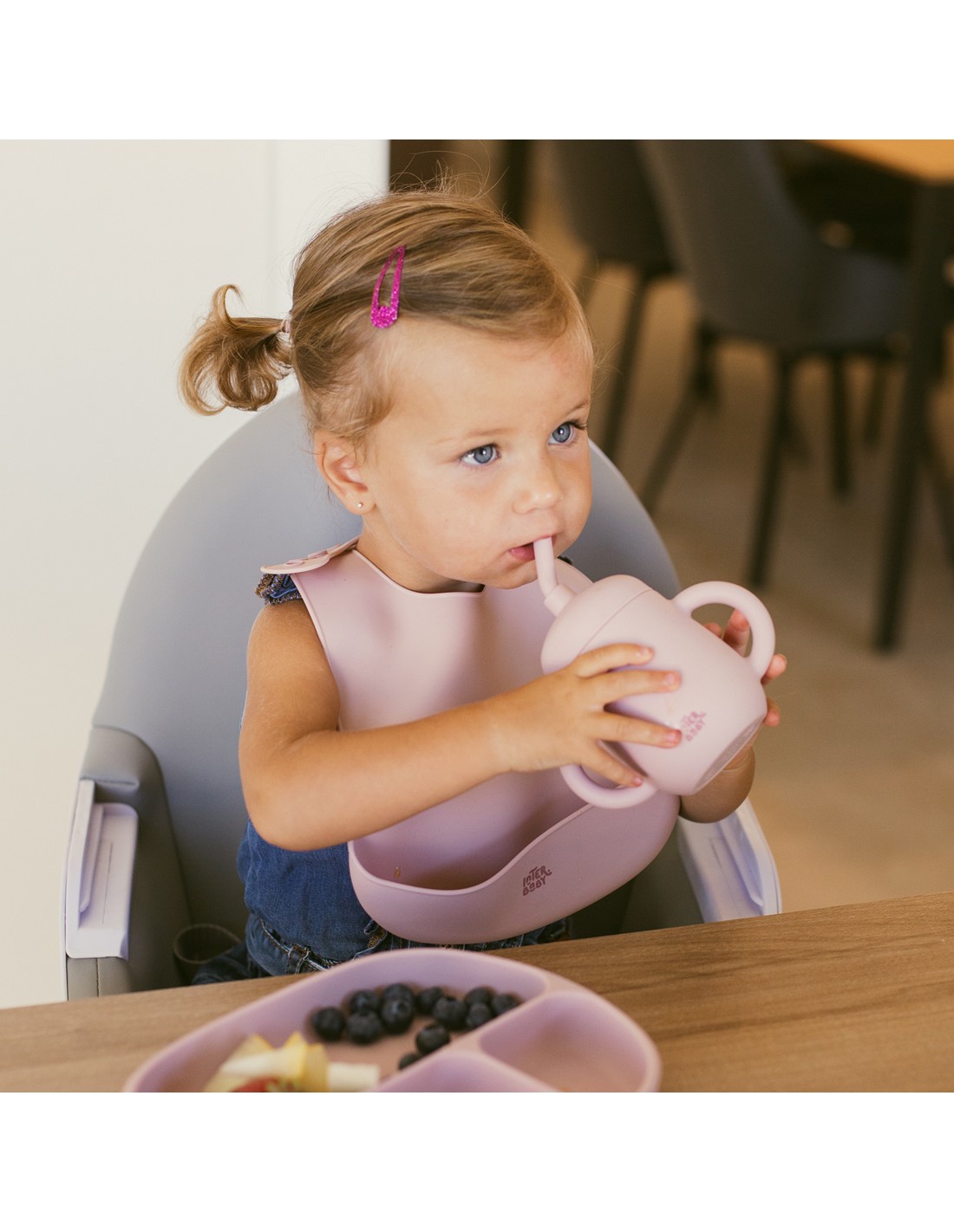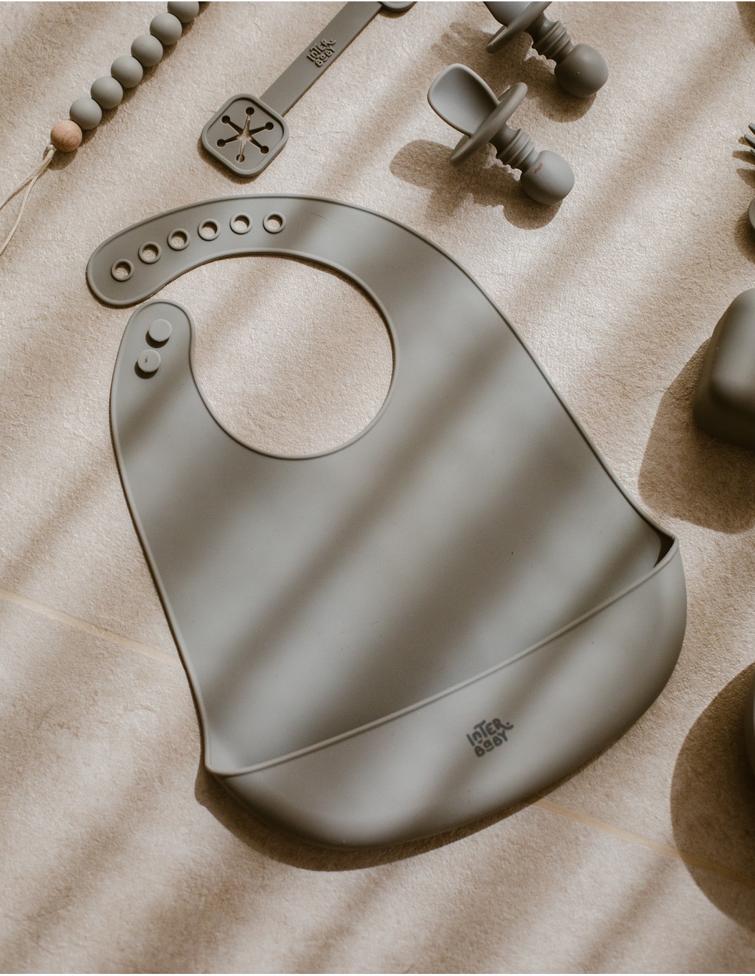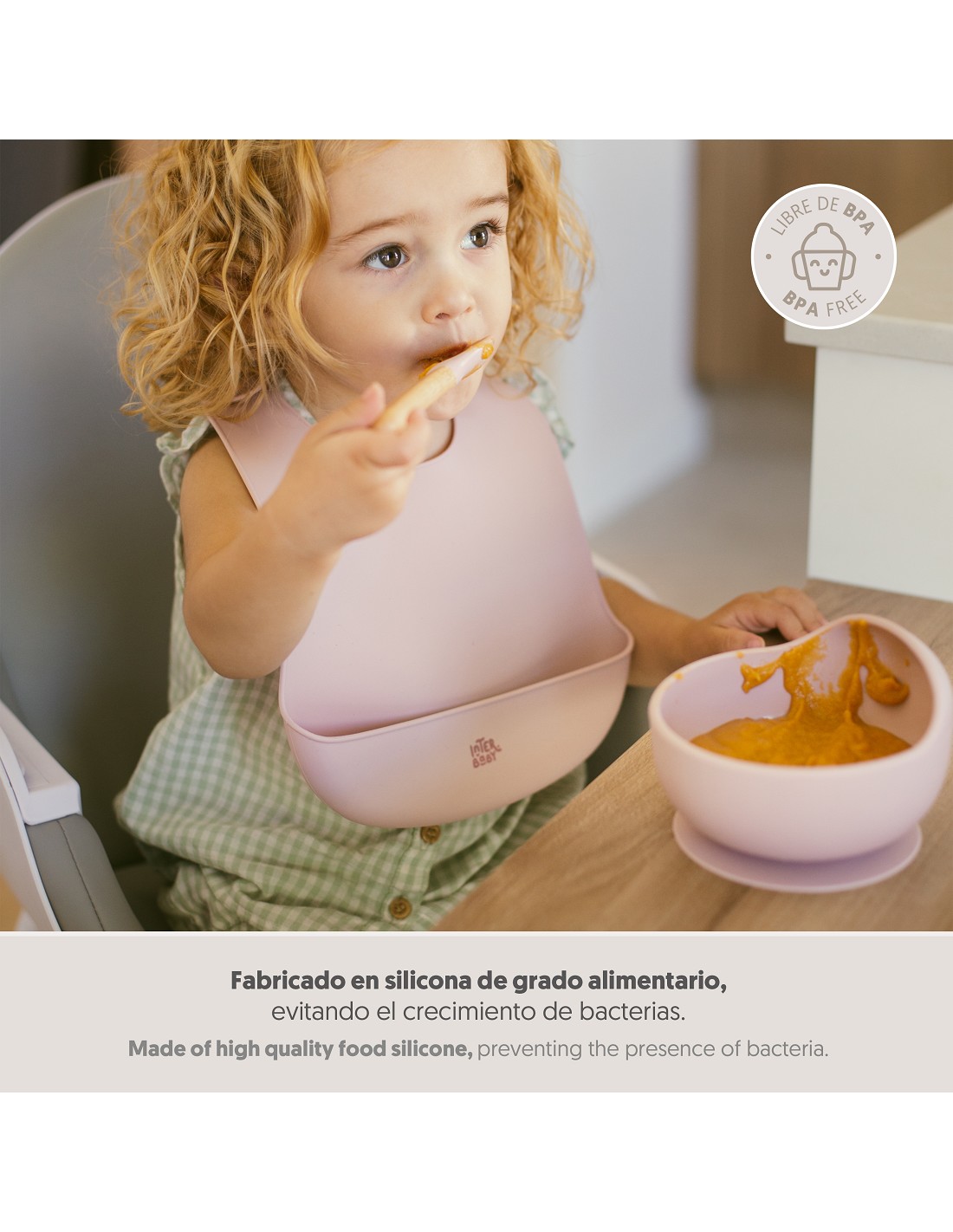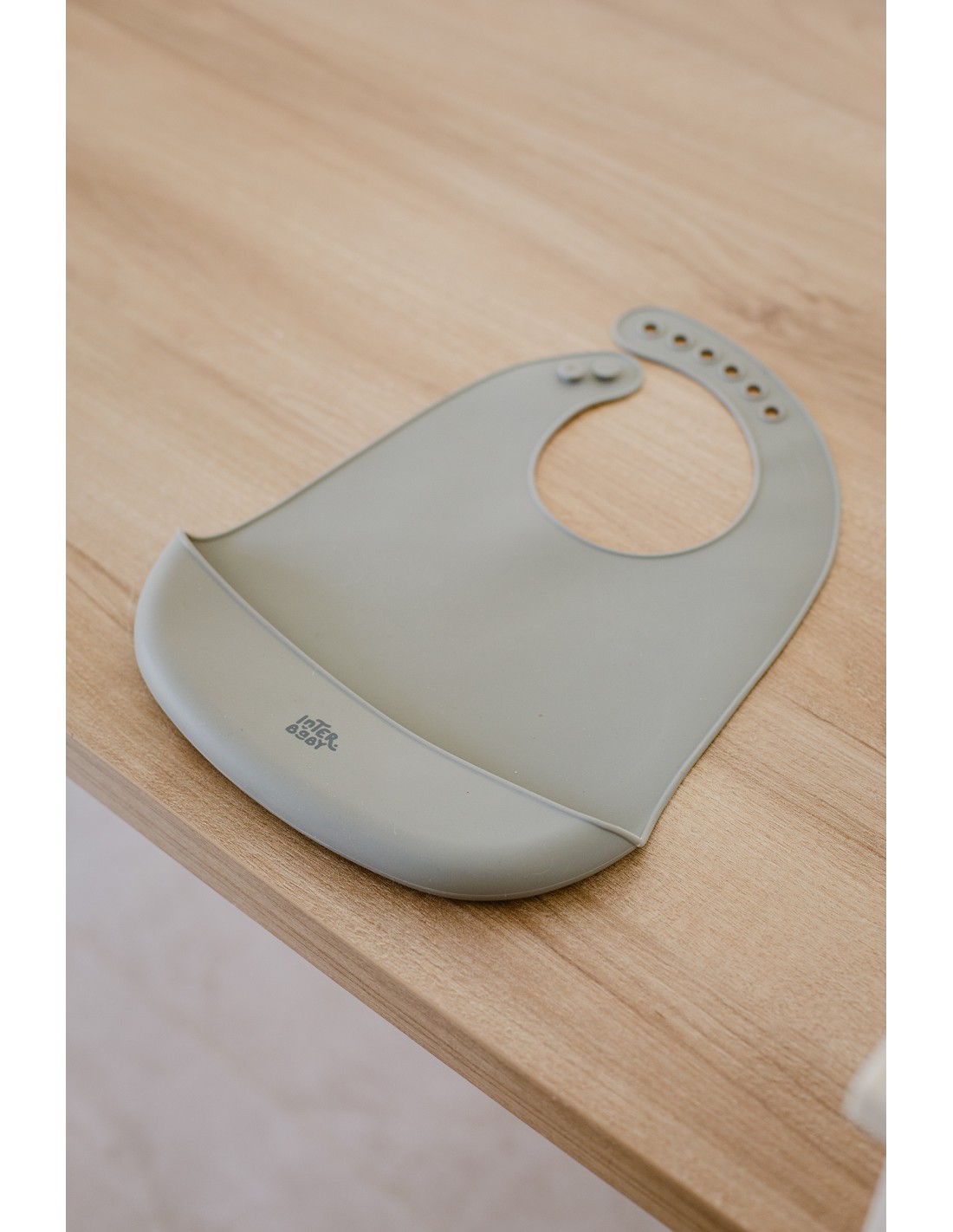 Babero de silicona alimentaria de alta calidad que incorpora un bolsillo recogemigas, perfecto para proteger la ropa de tu bebé. Flexible y se puede doblar fácilmente para reducir el espacio de almacenaje. Apto para lavavajillas. Libre de BPA, PVC y ftalatos.