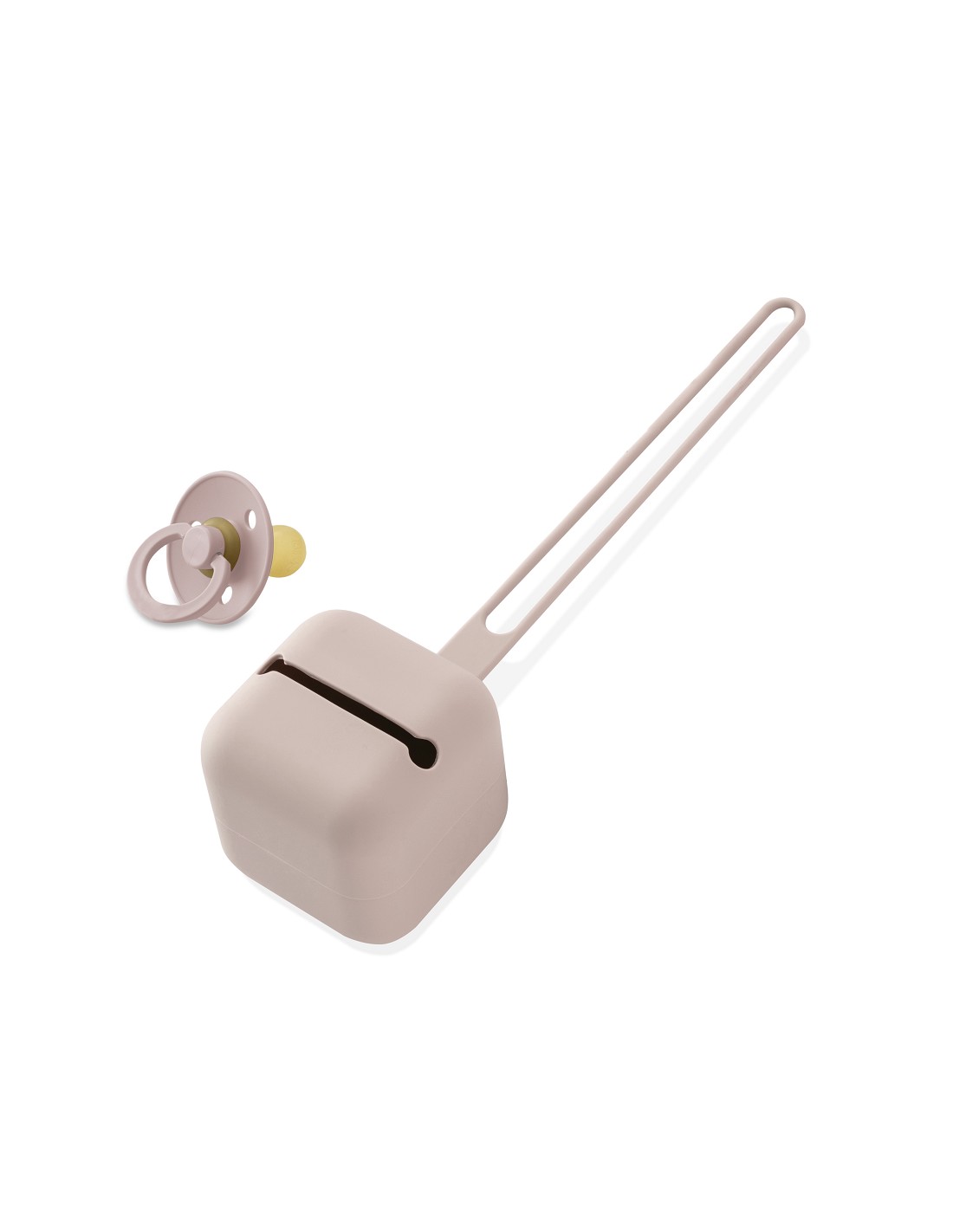 Portachupetes de silicona diseñado para llevarlo colgado en el carrito y tenerlo siempre a mano. No incluye el chupete. Apto para lavavajillas. Libre de BPA, PVC y ftalatos.