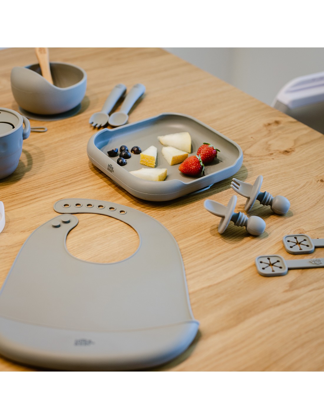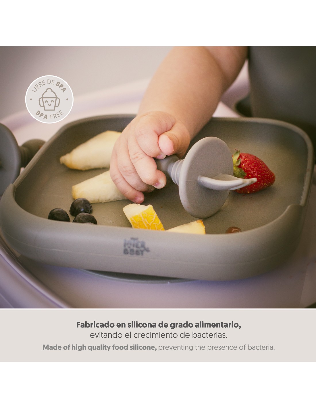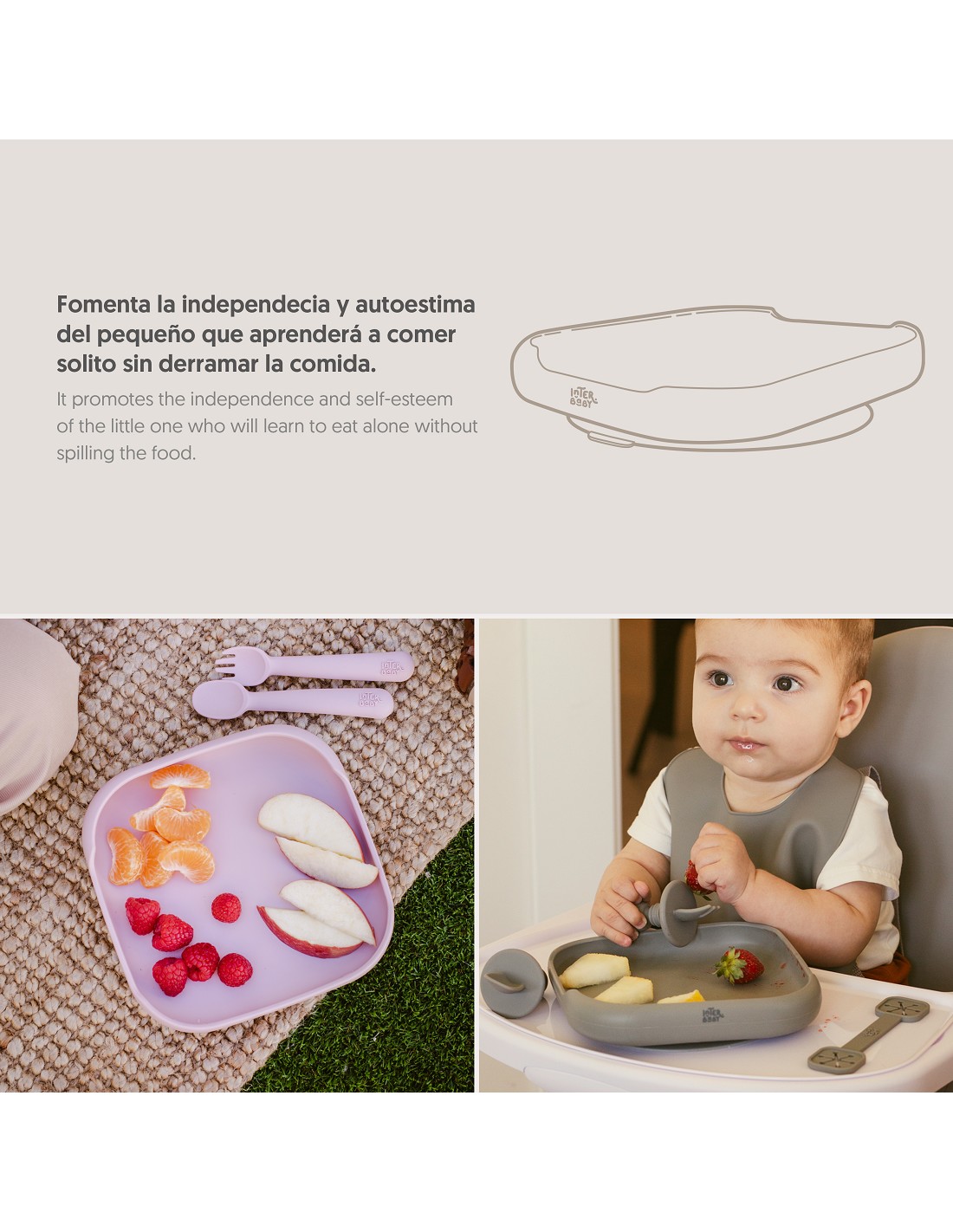 Práctico plato de silicona que incorpora ventosas para una perfecta fijación a la superficie evitando accidentes. Su diseño ayuda a tu bebé en la iniciación en tomar los alimentos por sí mismos. Fácil limpieza y muy resistente. Libre de posibles infecciones al estar fabricado en silicona libre de BPA, PVC, Vinilo, Plomo y ftalatos. Apto para lavavajillas.