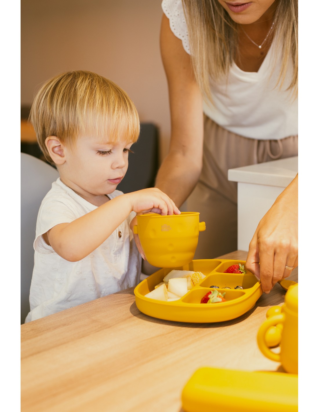 Práctico portalimentos plegable. Ideal para transportar tus alimentos al parque con tu bebé. Incluye tapa que asegura todo tipo de alimentos. Plegado sencillo para ahorro de espacio . Incluye asa para agarre sencillo de tu bebé. Apto para lavavajillas. Libre de BPA, PVC y ftalatos.