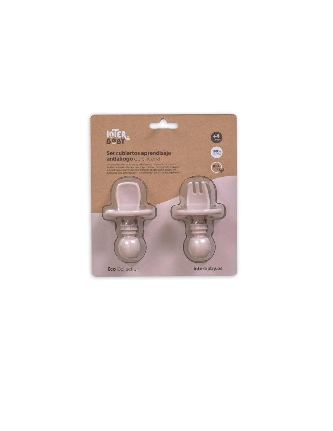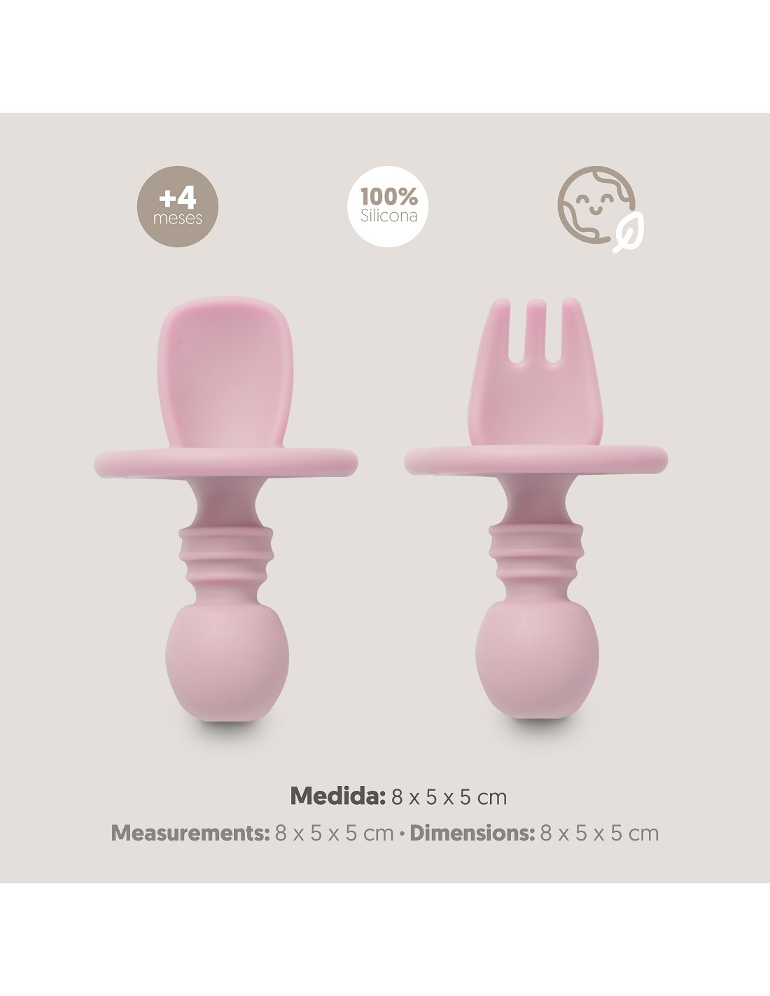 Set Cubiertos Aprendizaje de Silicona Rosa Maquillaje