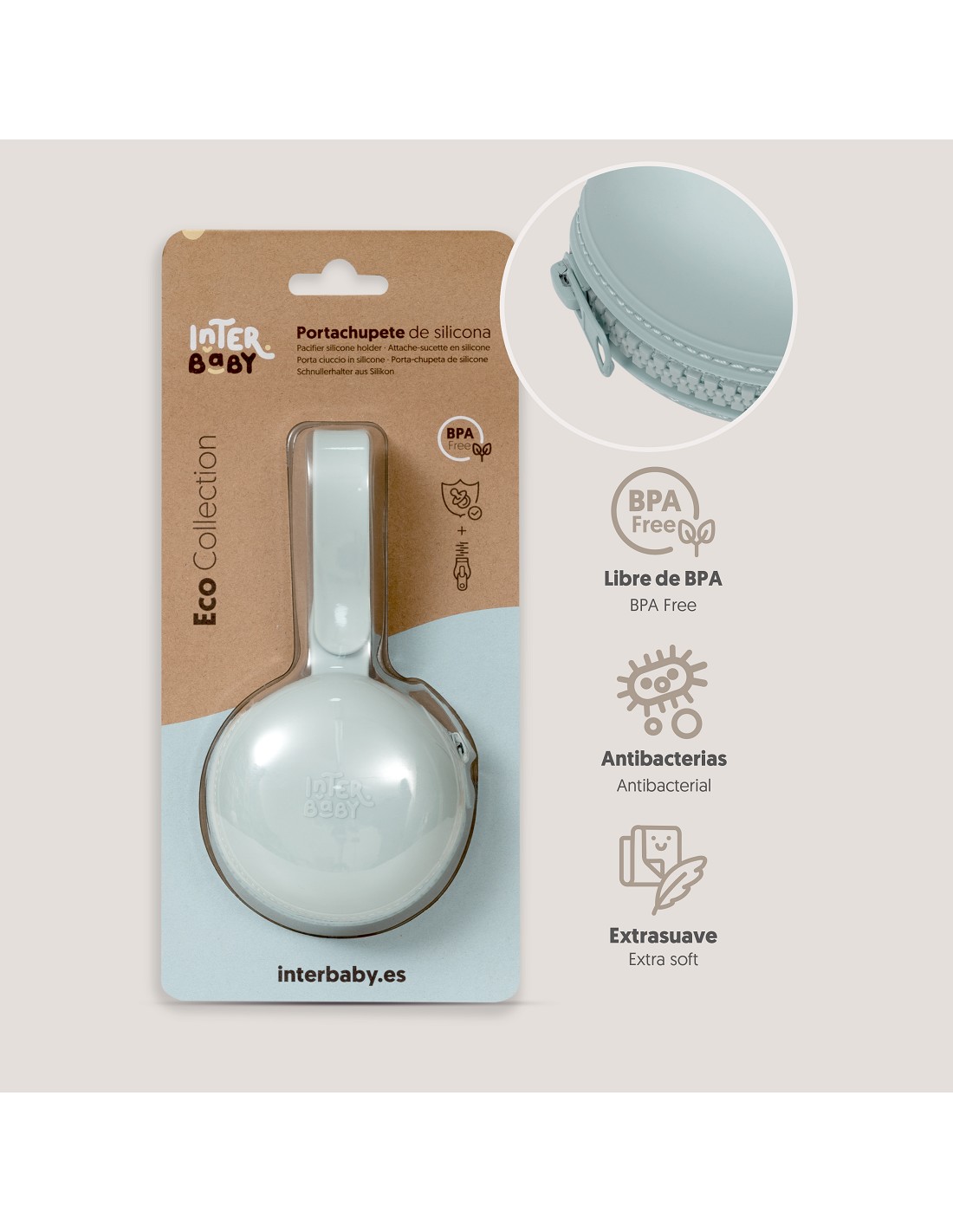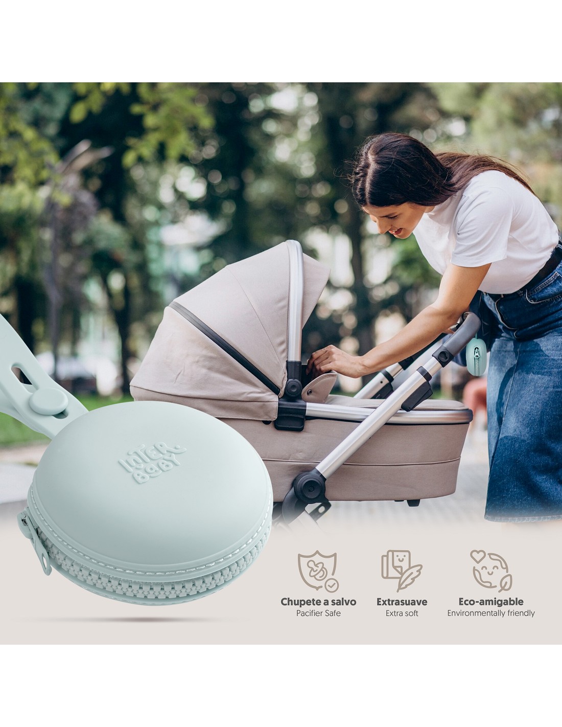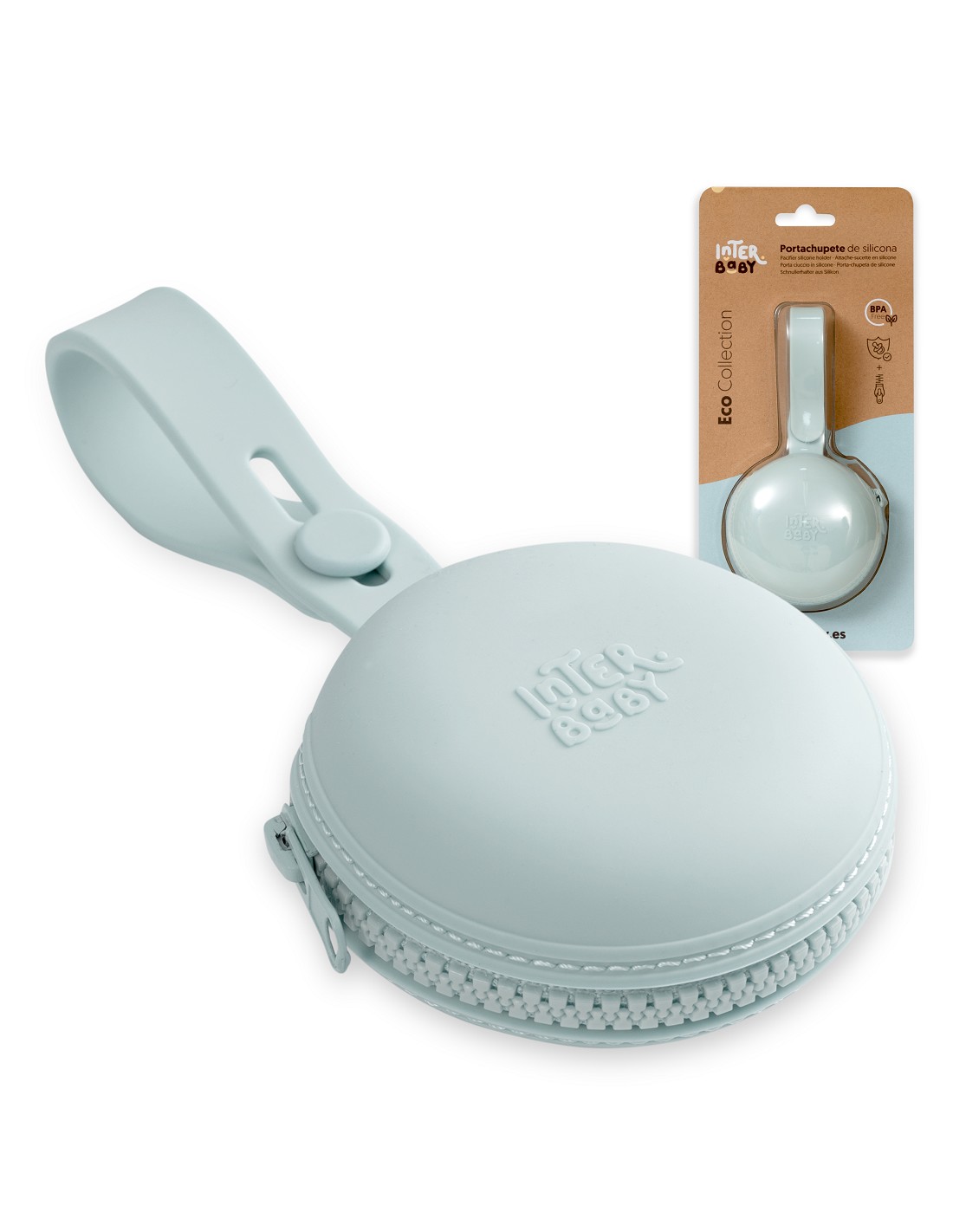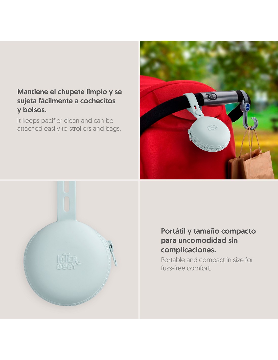 Porta chupete fabricado con silicona alimentaria apto para bebés, suave y seguro. Mantiene el chupete limpio y se sujeta fácilmente tanto a cochecitos como a bolsos. Alternativa ideal al pástico , portátil y de tamaño compacto para una comodidad sin complicaciones. Apto para lavavajillas. Libre de BPA, PVC y ftalatos.