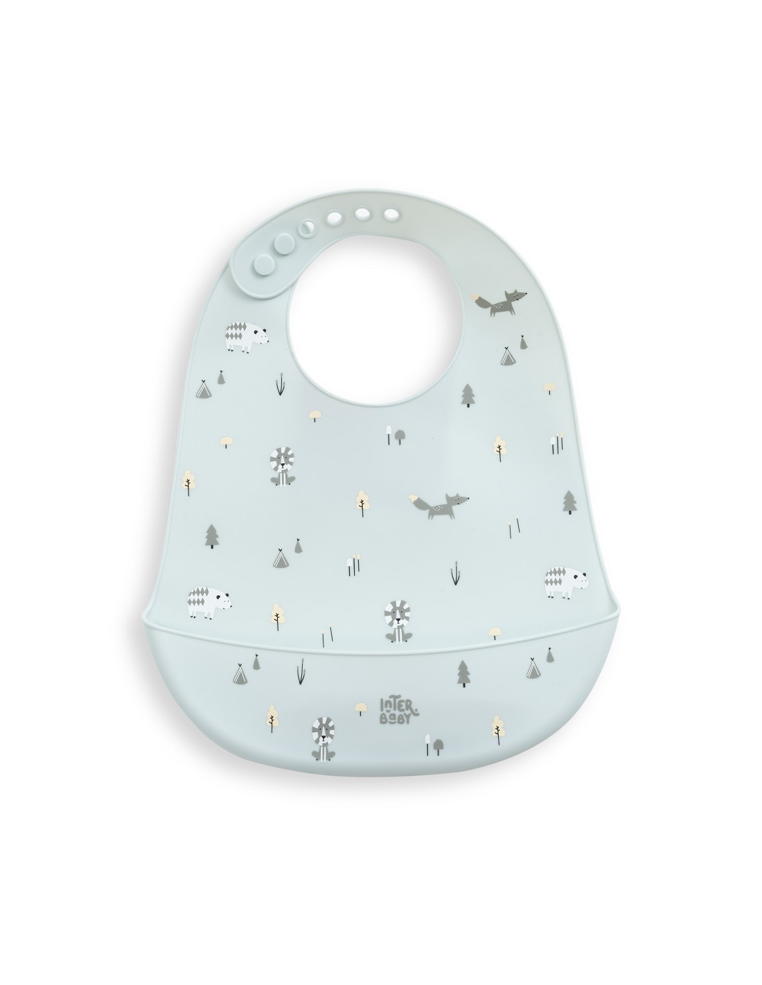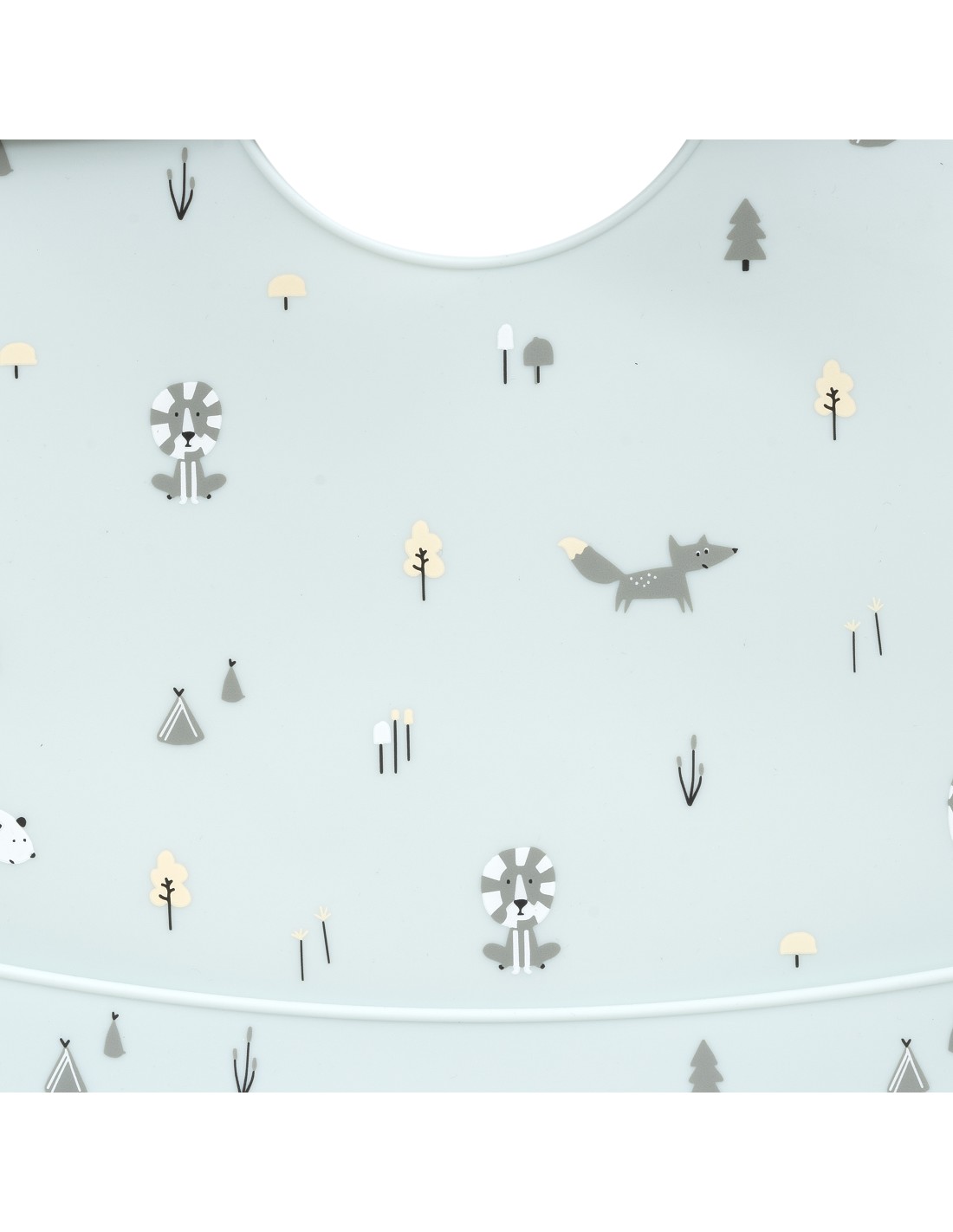 Babero Silicona Estampaddo Modelo Forest Azul Grisaceo