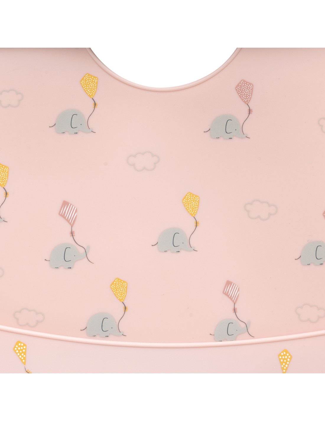 Babero Silicona Estampaddo Modelo Elefantes Rosa Maquillaje