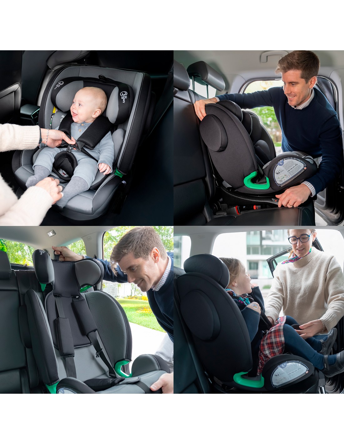 Silla Auto para bebes. Giro de 360 º. Soporta hasta 15 kg . Amplios sitemas de seguridad. Cumple la norma i-size. Evolutiva con reductor incluido. Apta de los 0 a 12 años