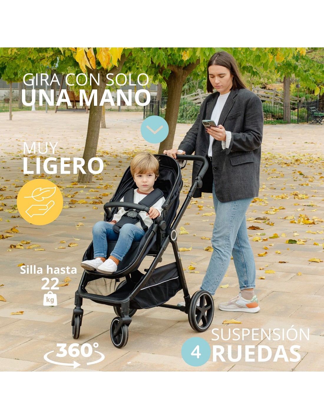 capota ajustable en cuatro posiciones y una cesta de