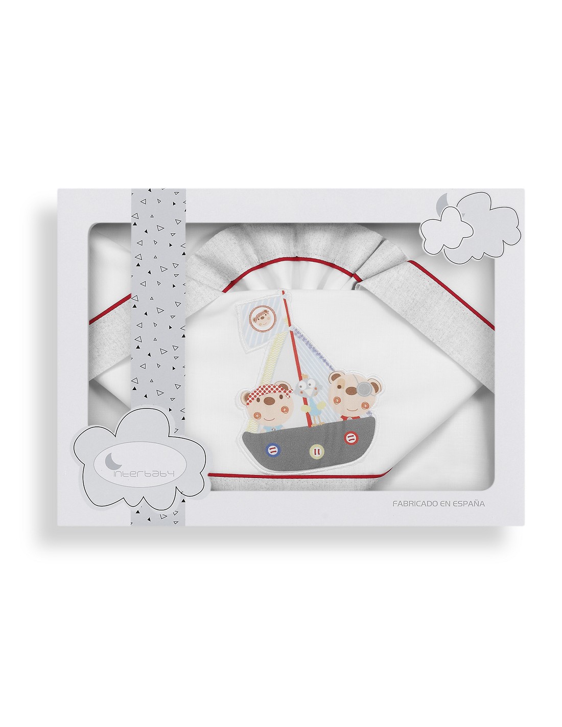 Compuesto por encimera (103 x 150 cm) , bajera (60 x 120 cm) y funda de almohada (60 x 30 cm). 100 % algodón. Lavar en frío.