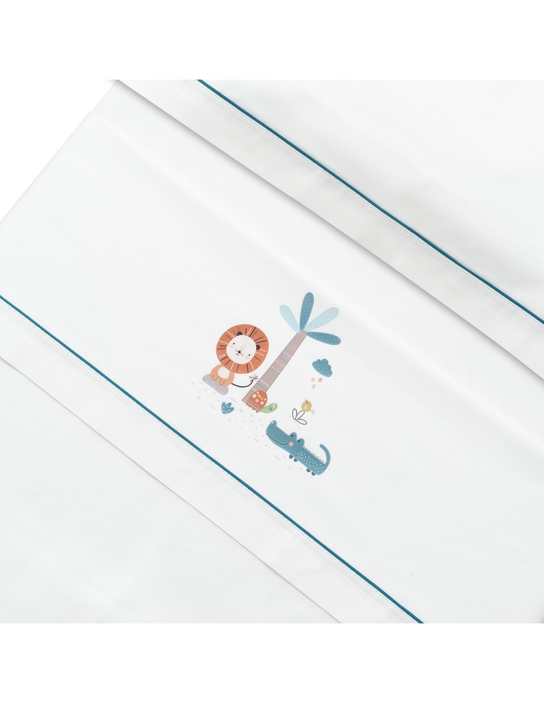 Compuesto por encimera (103 x 150 cm) , bajera (60 x 120 cm) y funda de almohada (60 x 30 cm). 100 % algodón. Lavar en frío.