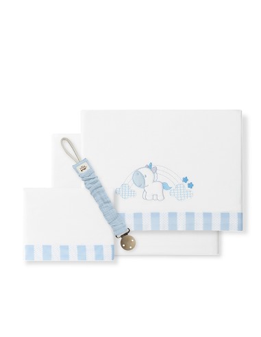Triptico Cuna Mod Unicornio Nubes+Broche Bco/Azul