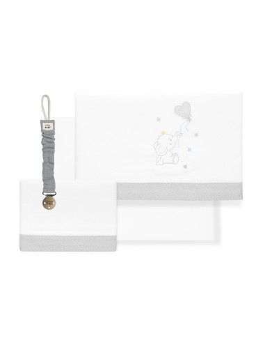 Triptico Cuna Elefante Globo Corazon+Broche Bco/Gris