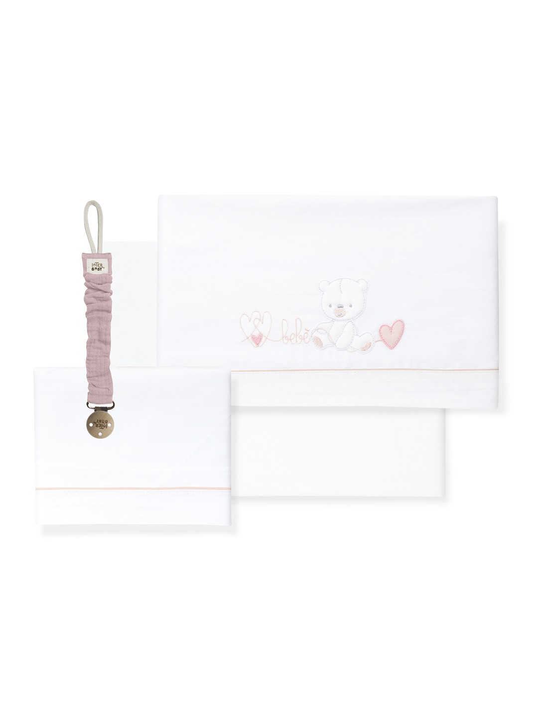 Triptico Cuna Corazon Oso Bebe+Broche Bco/Rosa