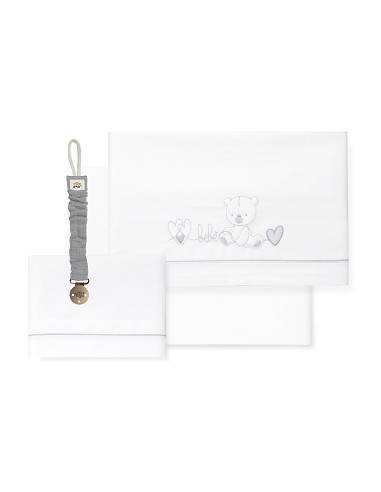 Triptico Cuna Corazon Oso Bebe+Broche Bco/Gris