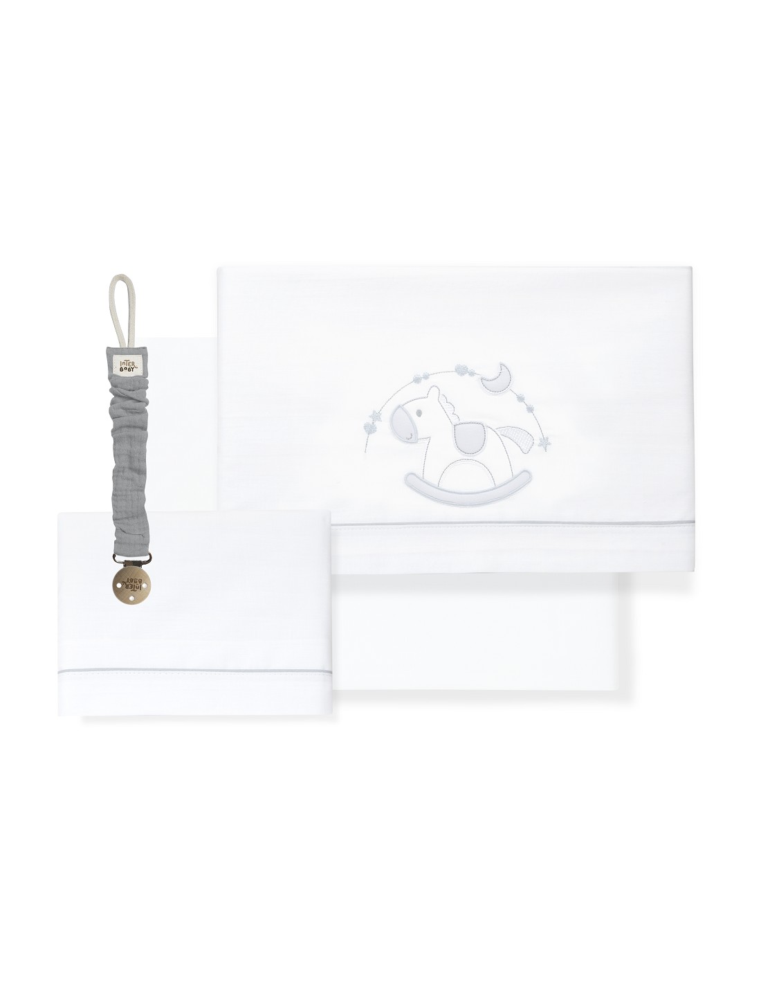 Triptico Cuna Caballito+Broche Bco/Gris