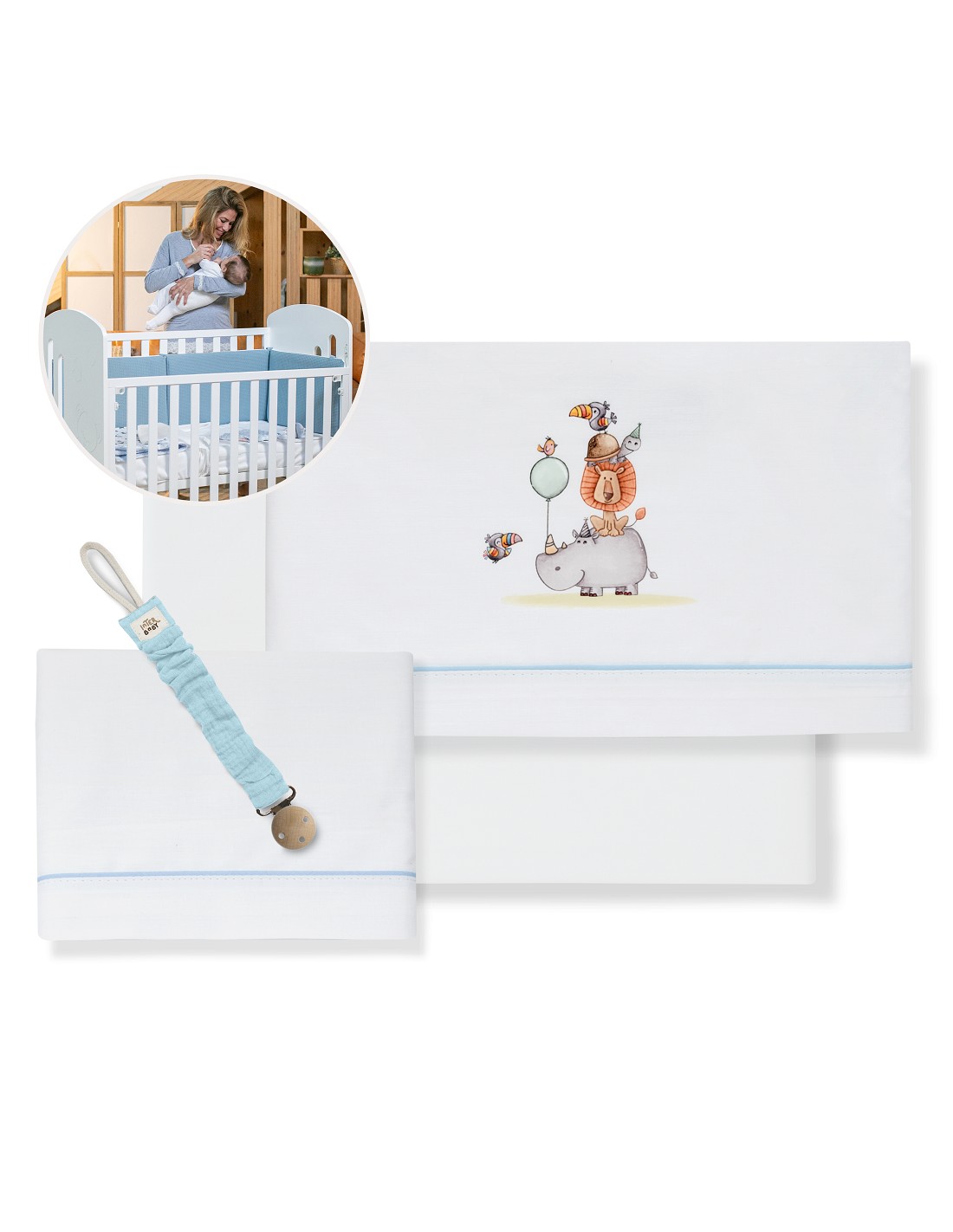 Triptico Cuna Estampado Rino-Leon+Broche Bco/Azul