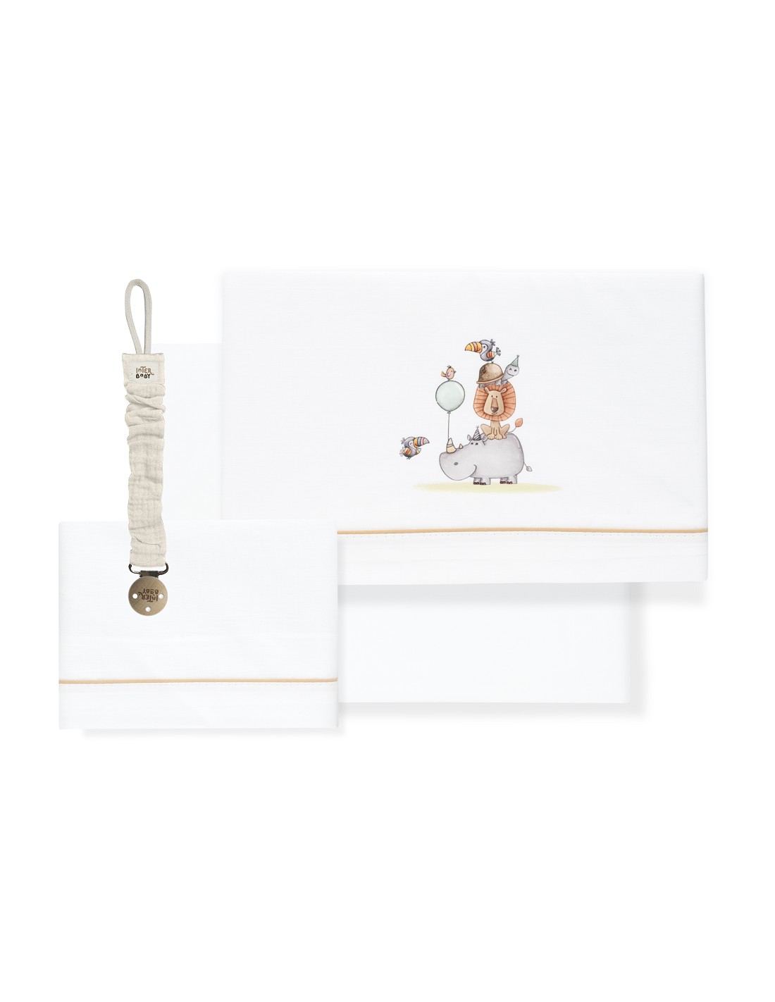 Triptico Cuna Estampado Rino-Leon+Broche Bco/Beig