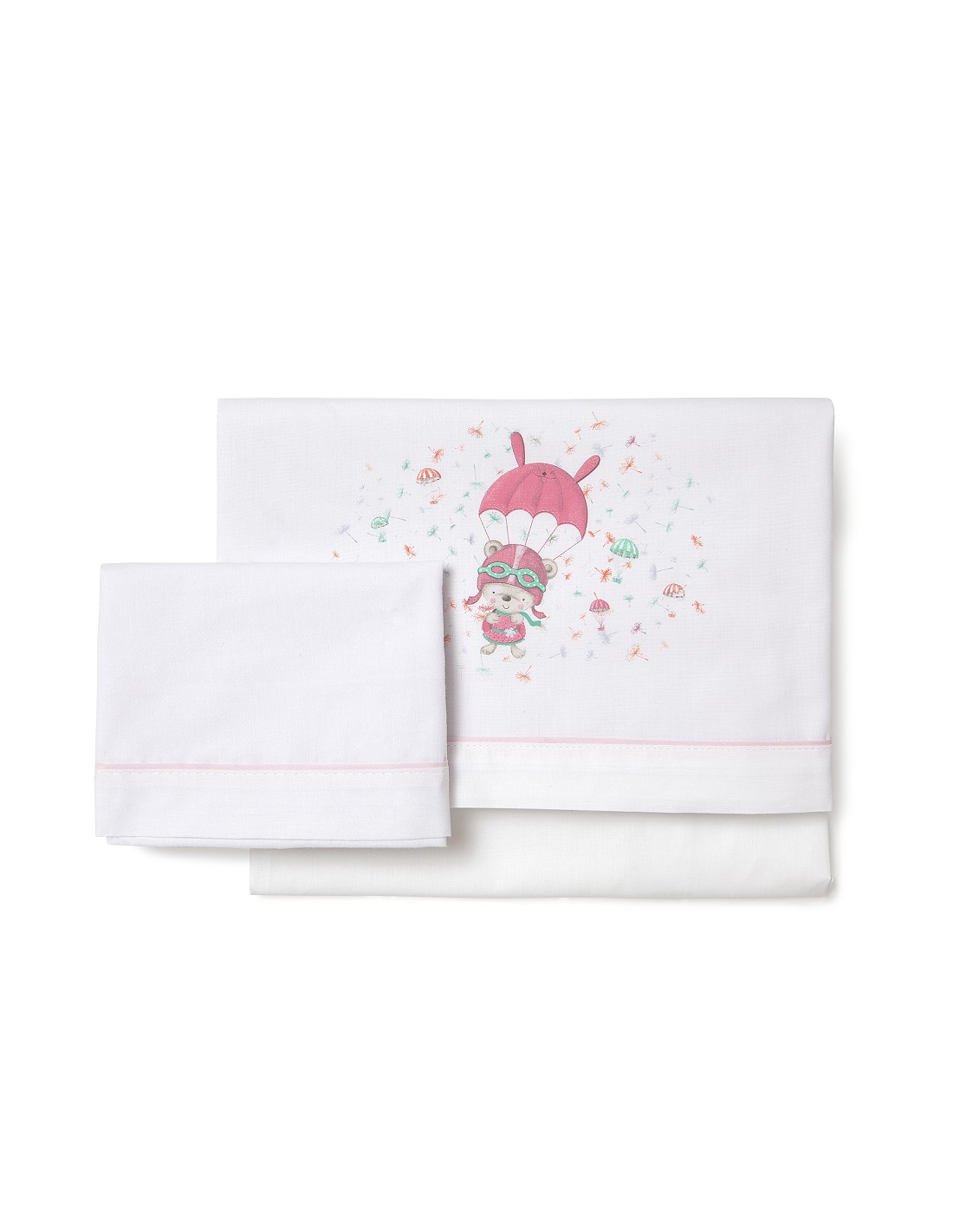 Compuesto por encimera (82 x 114 cm) , bajera (50 x 80 cm) y funda de almohada (50 x 30 cm). 100 % algodón. Lavar en frío.