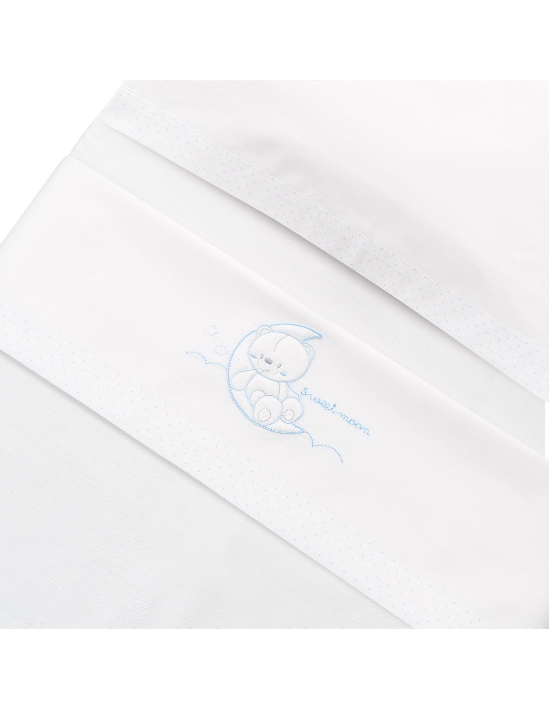 Compuesto por encimera (82 x 114 cm) , bajera (50 x 80 cm) y funda de almohada (50 x 30 cm). 100 % algodón. Lavar en frío.