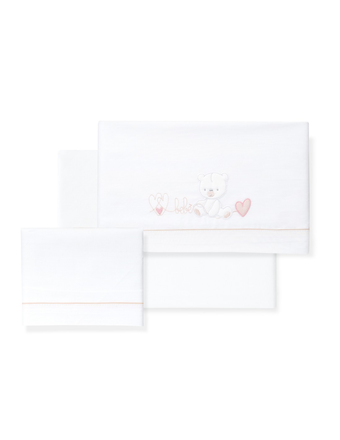 Triptico Minicuna Corazon Oso Bebe Bco/Rosa