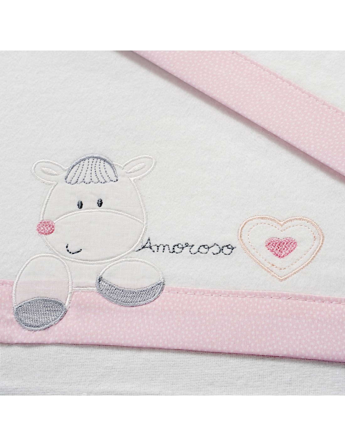 Triptico Cuna Franela Mod Corazon Amoroso Bco/Rosa