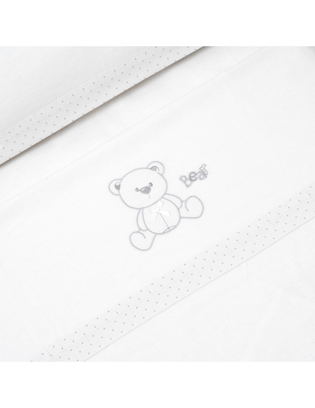 Compuesto por encimera (103 x 150 cm) , bajera (60 x 120 cm) y funda de almohada (60 x 30 cm). 100 % algodón. Lavar en frío.