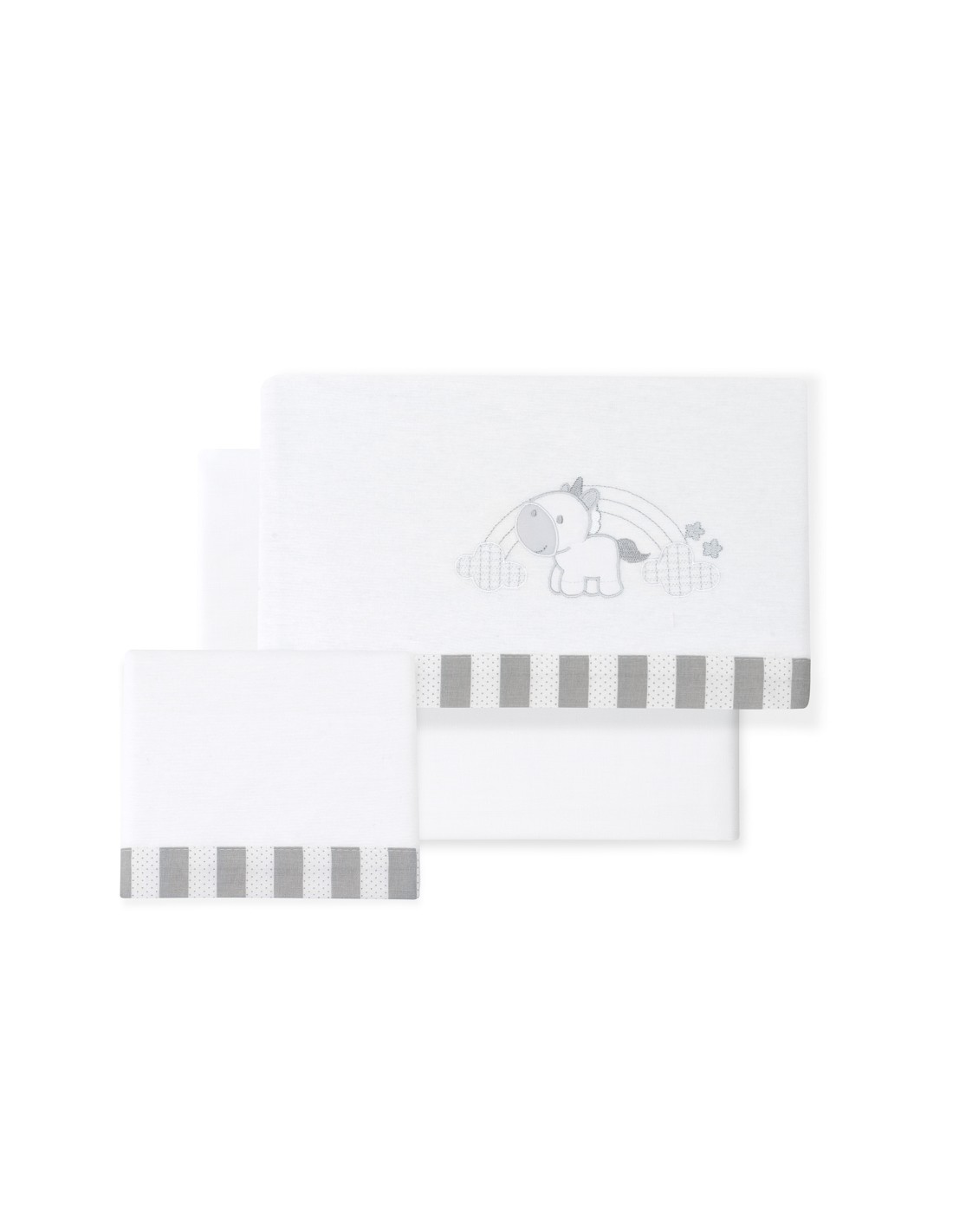 Triptico Cuna Franela Modelo Unicornio Nubes Bco/Gris