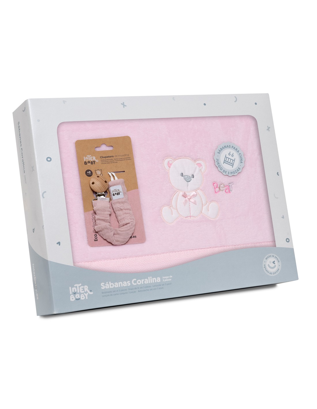 Triptico Cuna Coralina Mod. Oso Lazo+Broche Rosa