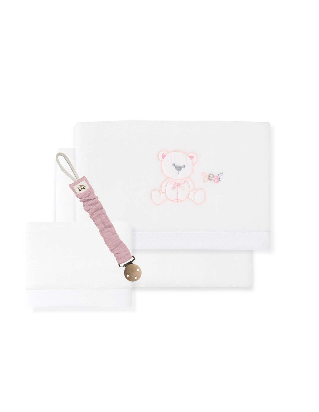 Triptico Cuna Coralina Mod. Oso Lazo+Broche Bco/Rosa