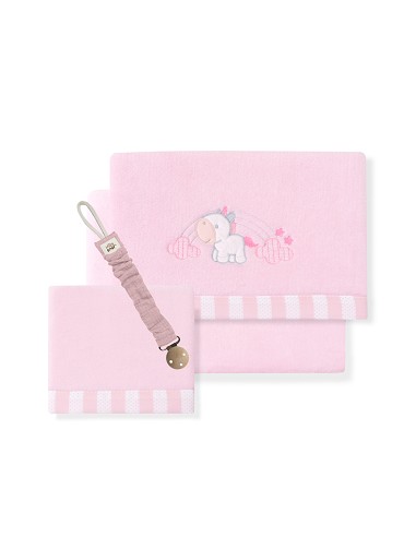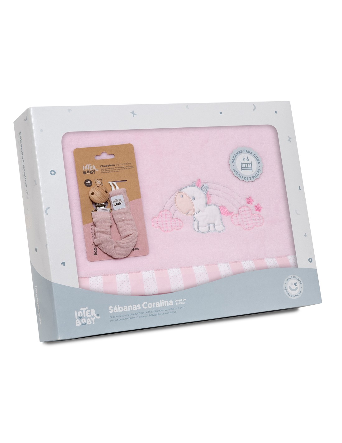 Triptico Cuna Coralina Mod. Unicornio Nube+Broche Rosa