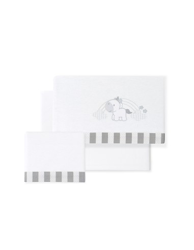 Compuesto por encimera (82 x 114 cm) , bajera (50 x 80 cm) y funda de almohada (50 x 30 cm). 100 % algodón. Lavar en frío.