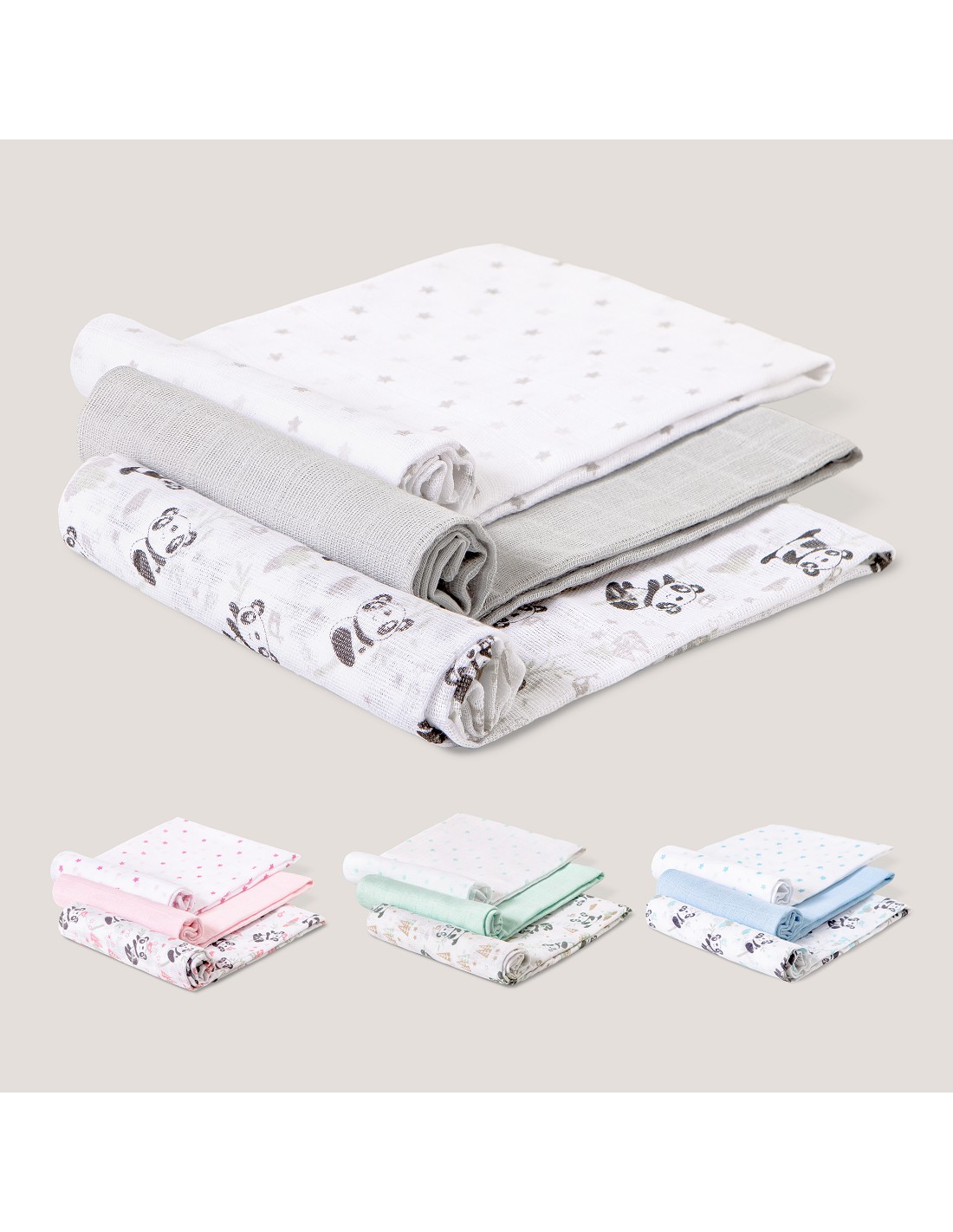 PACK DE 3 .Gasa fabricada en algodónl, tacto extrasuave, transpirable para el confort de tu bebe en verano, muy útil tanto para dar el pecho, como para el carrito de paseo y acomodarle por la noche.